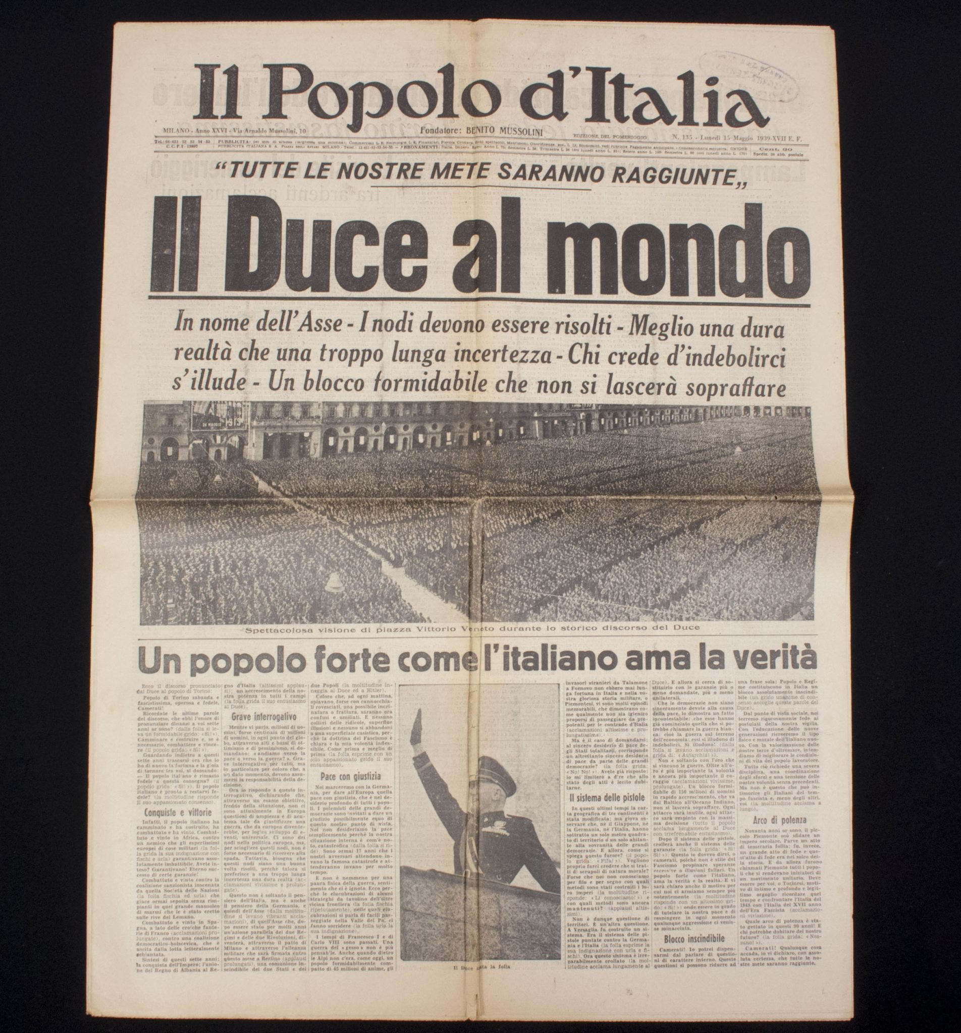 (Newspaper) Il Popolo d'Italia 'Il Duce al Mondo'.In good condition. Hard to find.