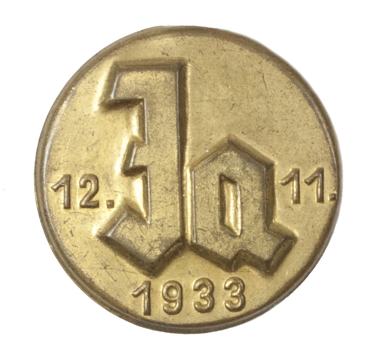 This a 'Ja' badge from November 1933, these badges were spread in Germany to get the voter to vote on Hitler. These are historically very interesting items as the course of history would be changed by these elections.A little more on the background:Parliamentary elections in Germany took place on 12 November 1933. They were the first since the Nazi Party seized complete power with the passage of the Enabling Act in March. All opposition parties had been banned by this time, and voters were presented with a single list containing Nazis and 22 non-party 'guests' of the Nazi Party. These 'guests', who included the likes of Alfred Hugenberg, still fully supported the regime of Adolf Hitler in any event.This election set the tone for all further elections and referenda held in the Nazi era. Official results showed 92 percent of the voters approved the Nazi list, on a turnout of 96 percent. The vote was held in far-from secret circumstances; many voters feared that anyone who voted 'no' would be detected and punished for doing so. In some communities, voters were threatened with reprisals if they dared to vote no, or even if they simply failed to vote at all. Nonetheless, 3.3 million voters submitted 'invalid' ballots.These elections were held on the same day as a separate referendum on Hitler's decision to pull Germany out of the League of Nations, which passed with similar numbers. The new Reichstag, exclusively composed of NSDAP members and sympathisers, convened on 12 December to elect a Presidium headed by President of the Reichstag Hermann Göring.