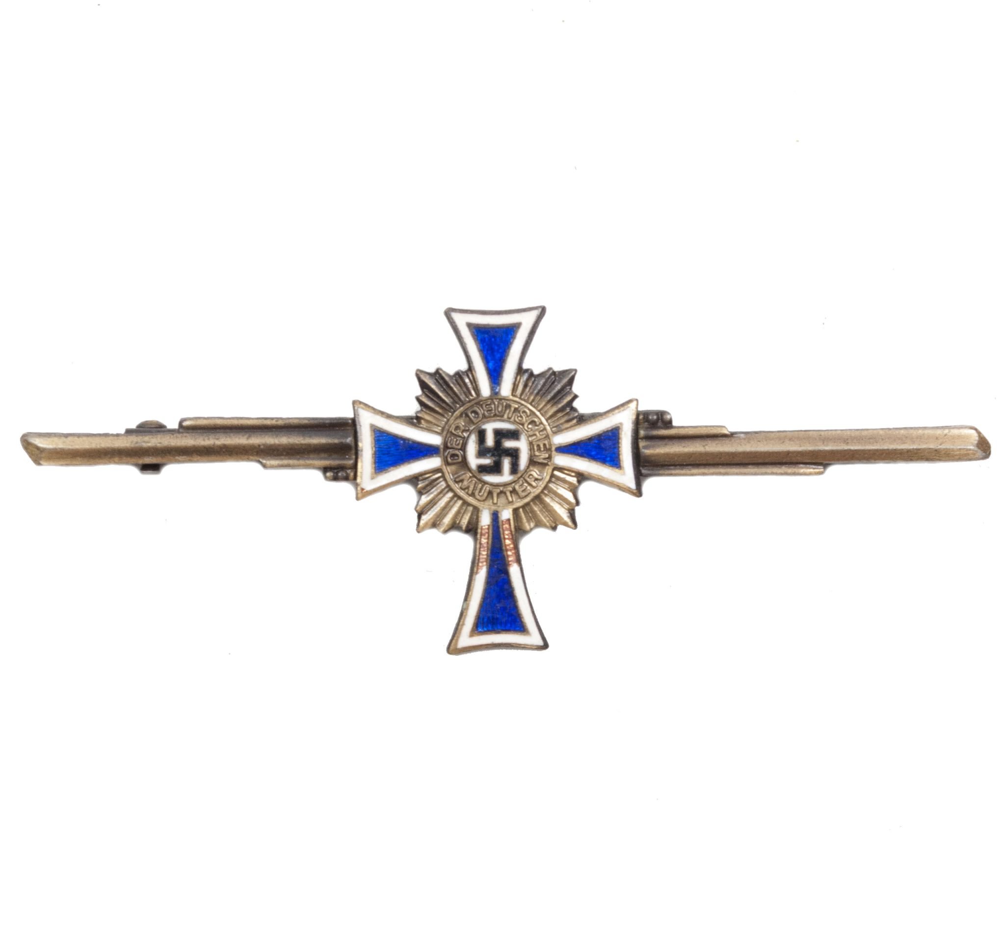 Mutterkreuz bronze Spange / Motherscross bronze brooch.The size is approximately 61 millimeter.Very rare!!!This is a large single bar brooch. Damage to the enamel, priced accordingly.In good condition.