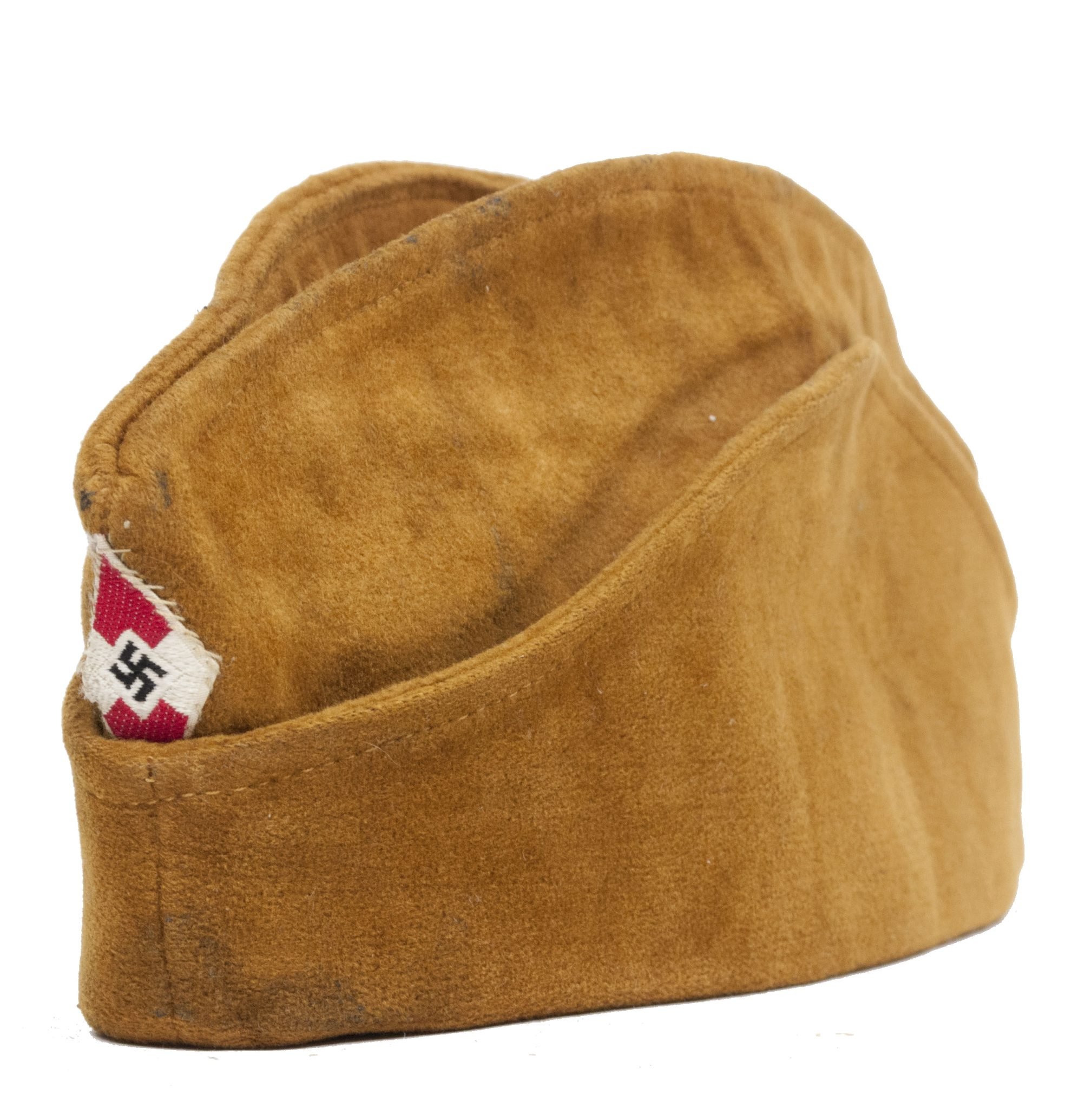 This is a very early model Hitlerjugend (HJ) Sidecap.Made of nice color suede cloth. With seperate sewn on small HJ diamond to the front.With pressbuttons to the sideflaps.In very good condition. Thee early type HJ sidecaps are very hard to find.