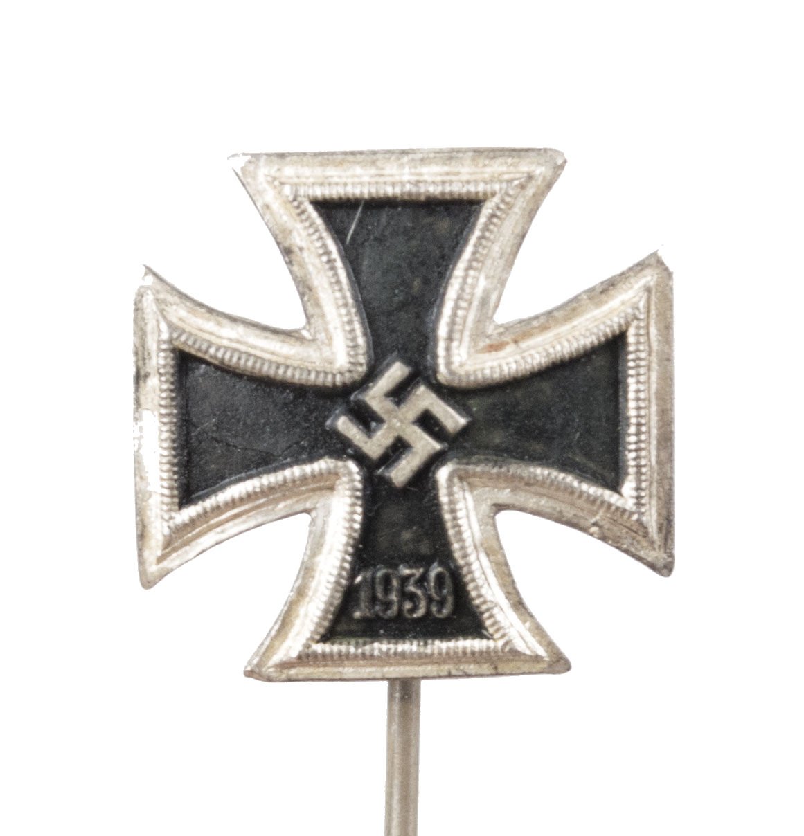 This is an Iron cross miniature stickpin.The size is approximately 16 millimeter. It is in great condition and made of silver -> ont eh back hallmarked '800' for silvercontent.