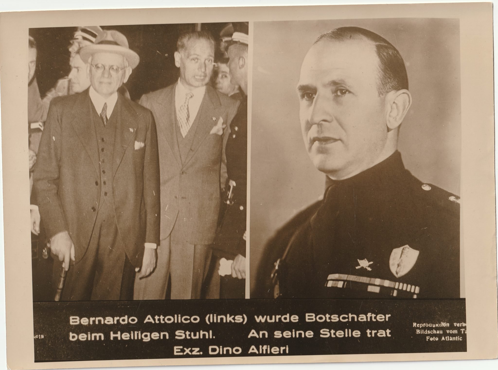 (Pressphoto) Bernardo Attolico wurde Botschafter beim Heiligen Stuhl. An seine Stelle trat Exz. Dino Alfieri (24x18cm)