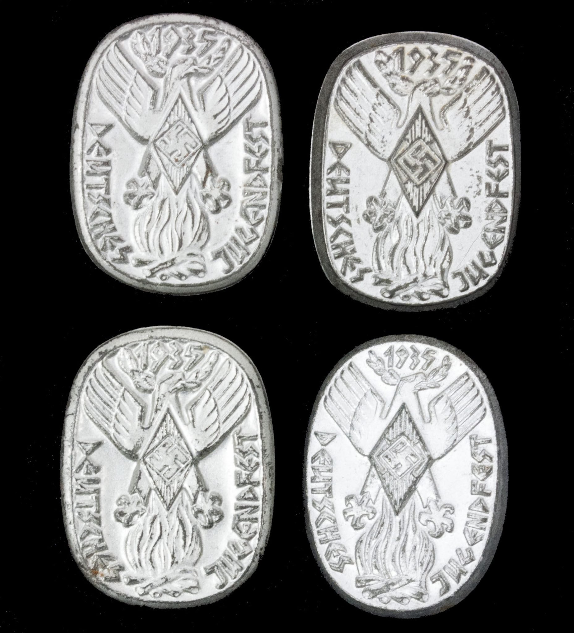 This is a small lot of 4 Hitlerjugend (HJ) Deutsches Jugendfest 1935 abzeichen.The price is for all 4 together!In good condition.