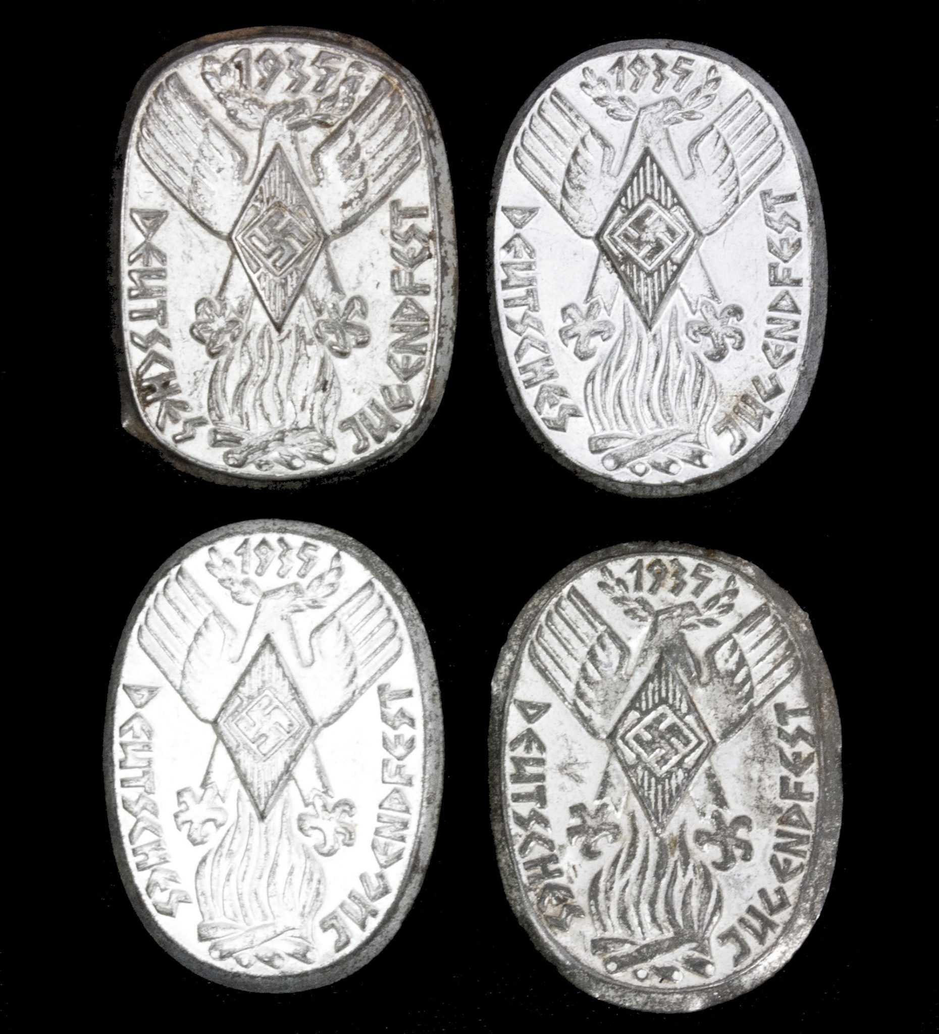 This is a small lot of 4 Hitlerjugend (HJ) Deutsches Jugendfest 1935 abzeichen.The price is for all 4 together!In good condition.
