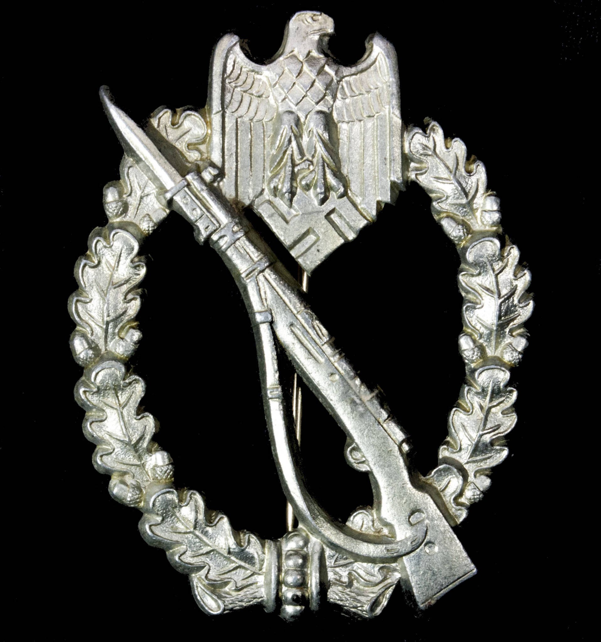 Infanterie Sturmabzeichen (ISA) bronze / Infantry Assault Badge (IAB).Maker Gebrüder Wegerhof. With a great silver finish, but my camera can't catch it's beauty. In hand very very nice and good condition.