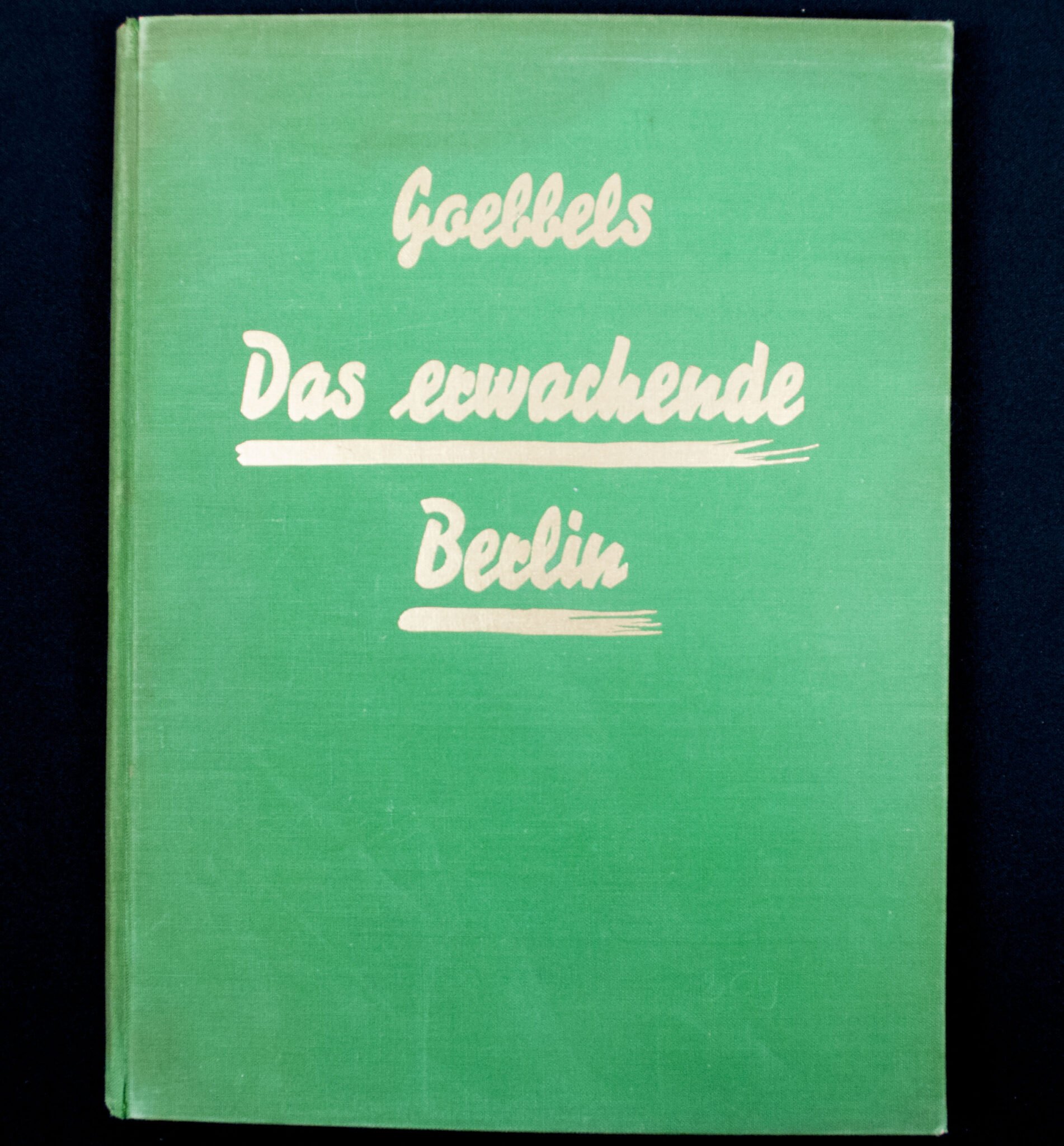 (Book) Joseph Goebbels β Das Erwachende Berlin, Franz Eher Verlag Nachf. MΓΌnchen, (1934), 184 pp. Full linnen bound.This early book shows in photo's the story of how the NSDAP got to power in its early days. It was published in 1934 and is still THE standard photographic work on the rising to power of the NSDAP in Berlin.On the first page inside is part of the original (and impossible to find!) dustjacket glued in. On the inside of the cover is an original WHW collecting paper glued in.The book is in good and typical old condition. 99 out of 100 on the collectorsmarkt have some kind of damage, either missing gold lettering on the front, bent bookplates, loose bookblocks or loose pages. This is always because of the used bad period paper and bindingmethods. The one we offer is in good condition and is without any big damages. Sure, it is almost 90 years old and is not in newlike condition, but it is guaranteed much better than most you can find for sale.
