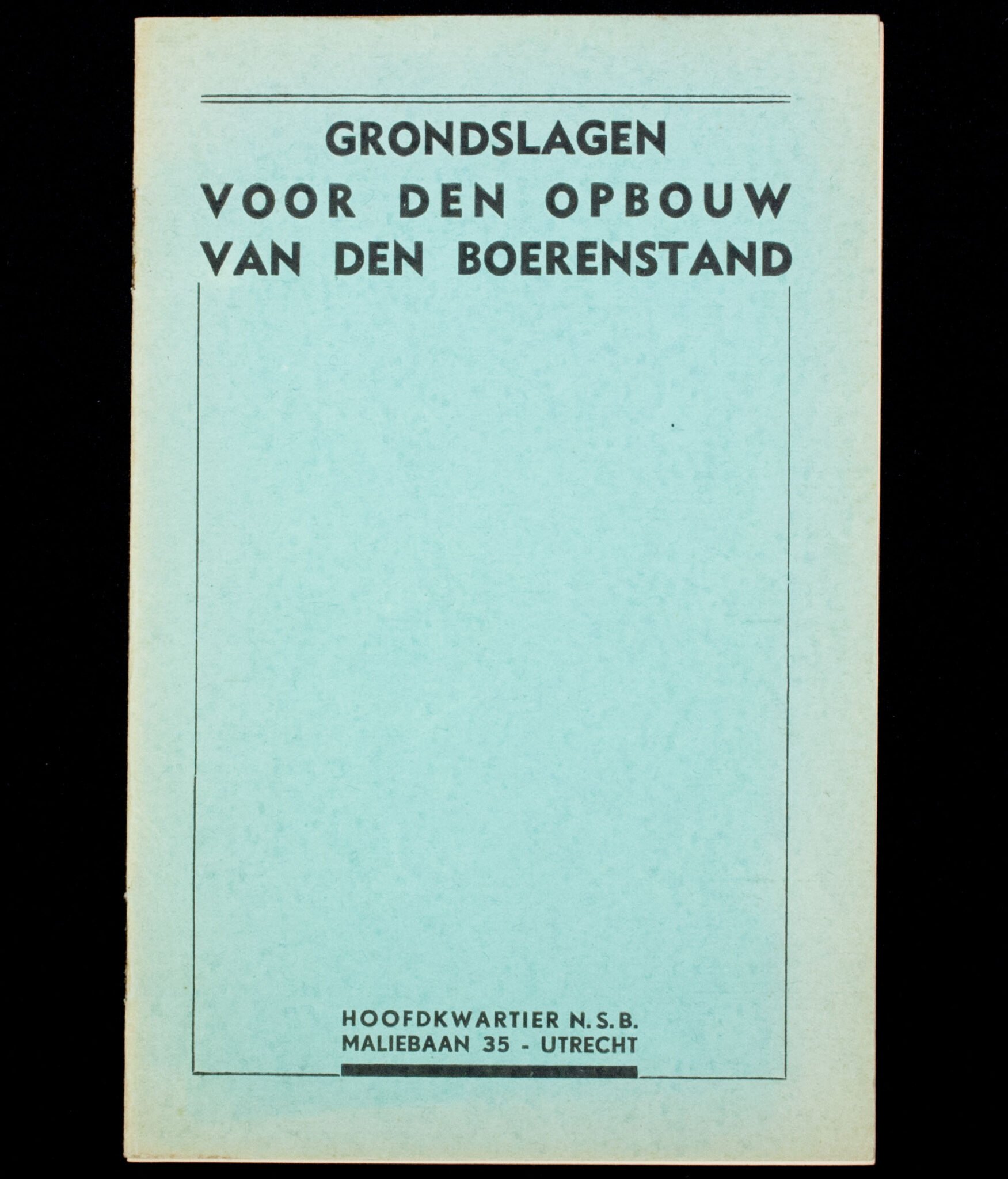 (NSB) A. Mussert, Grondslagen voor den opbouw van den boerenstand, Hoofdkartier NSB, Utrecht, (1941) 12 pp. Softcover.In very good condition. Staples removed.From my own collection.
