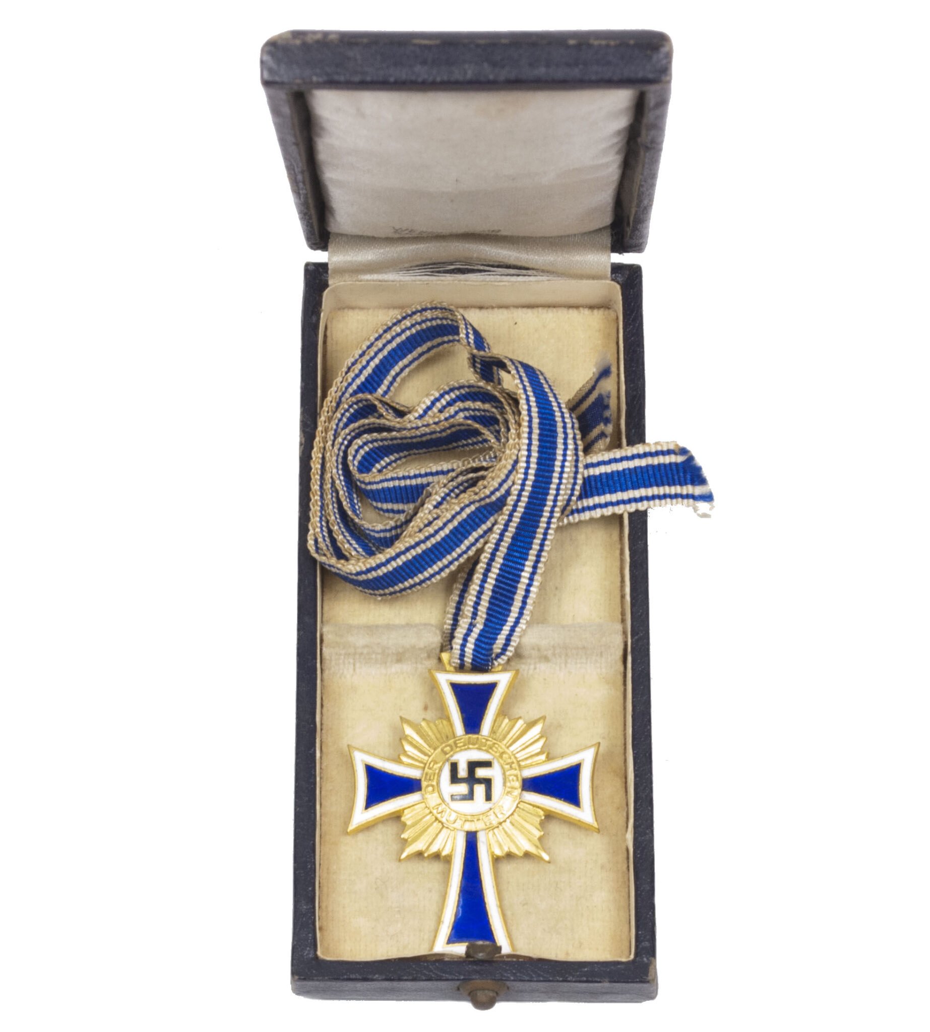 Mutterkeuz Gold + case Motherscross gold + etui (Maker Werner Redo).For women with 8 or more children.The cross on long ribbon.In good condition.