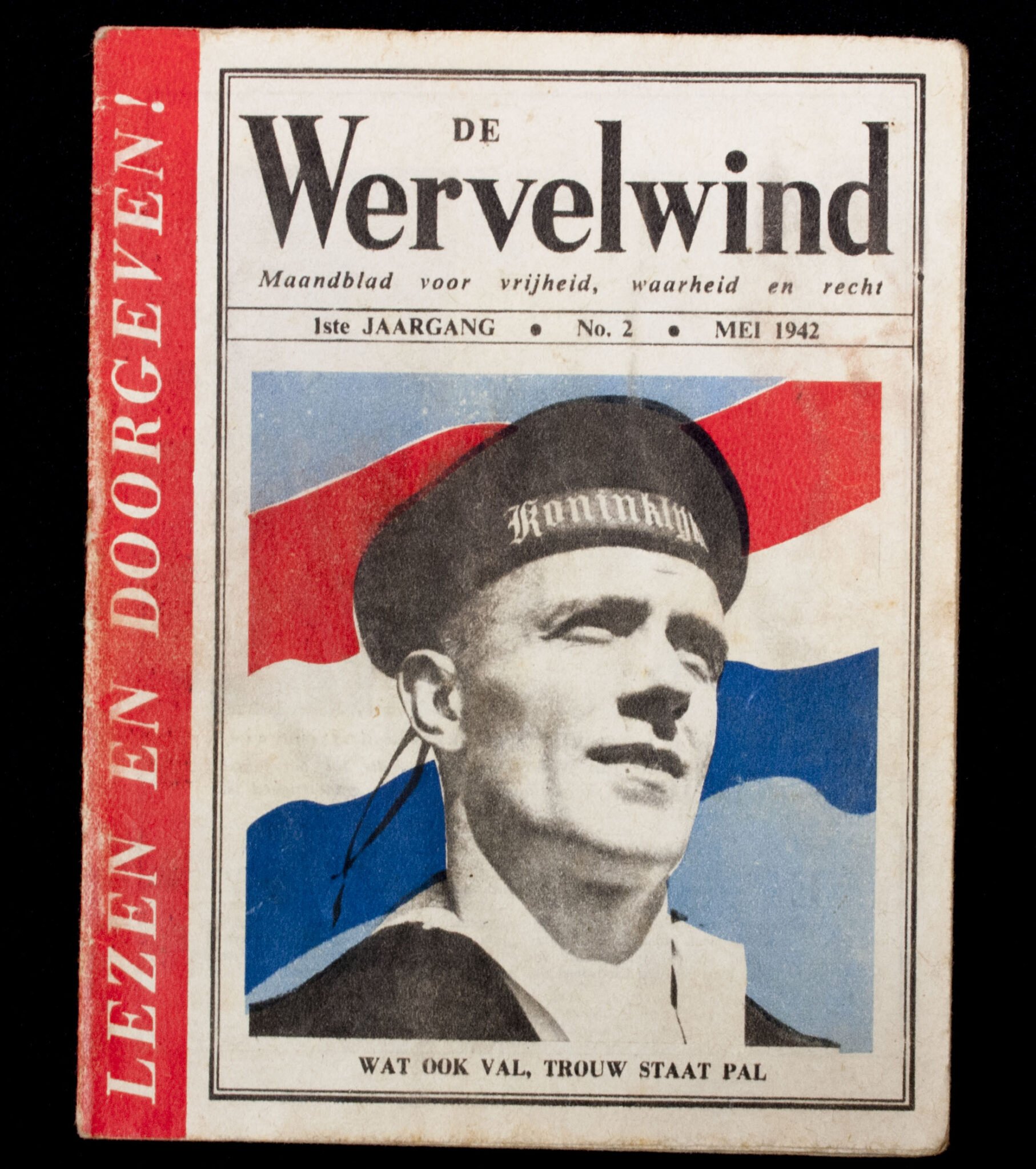 (Resistence Magazine) De Wervelwind Maandblad voor vrijheid, waarheid en recht. No.2Spread and dropped by RAF airplane in 1942 over the Netherlands.In good condition.