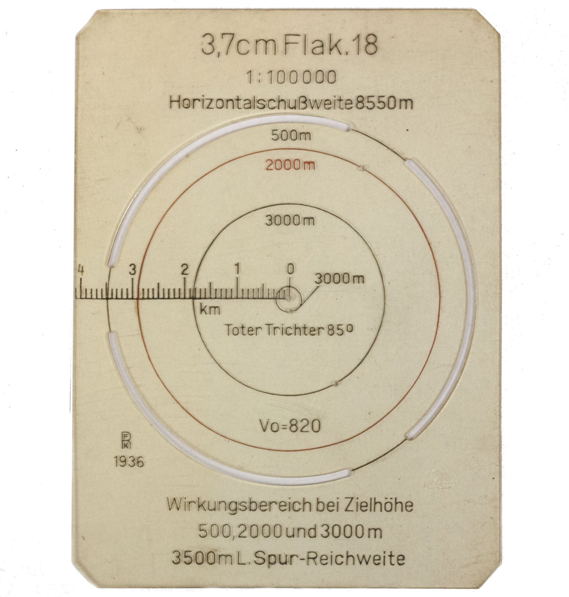 Flak range card dated 1936, for the German mapcase.It is marked with 'FKR' which might be Franz Kuhlmann.In good condition and very hard to find.