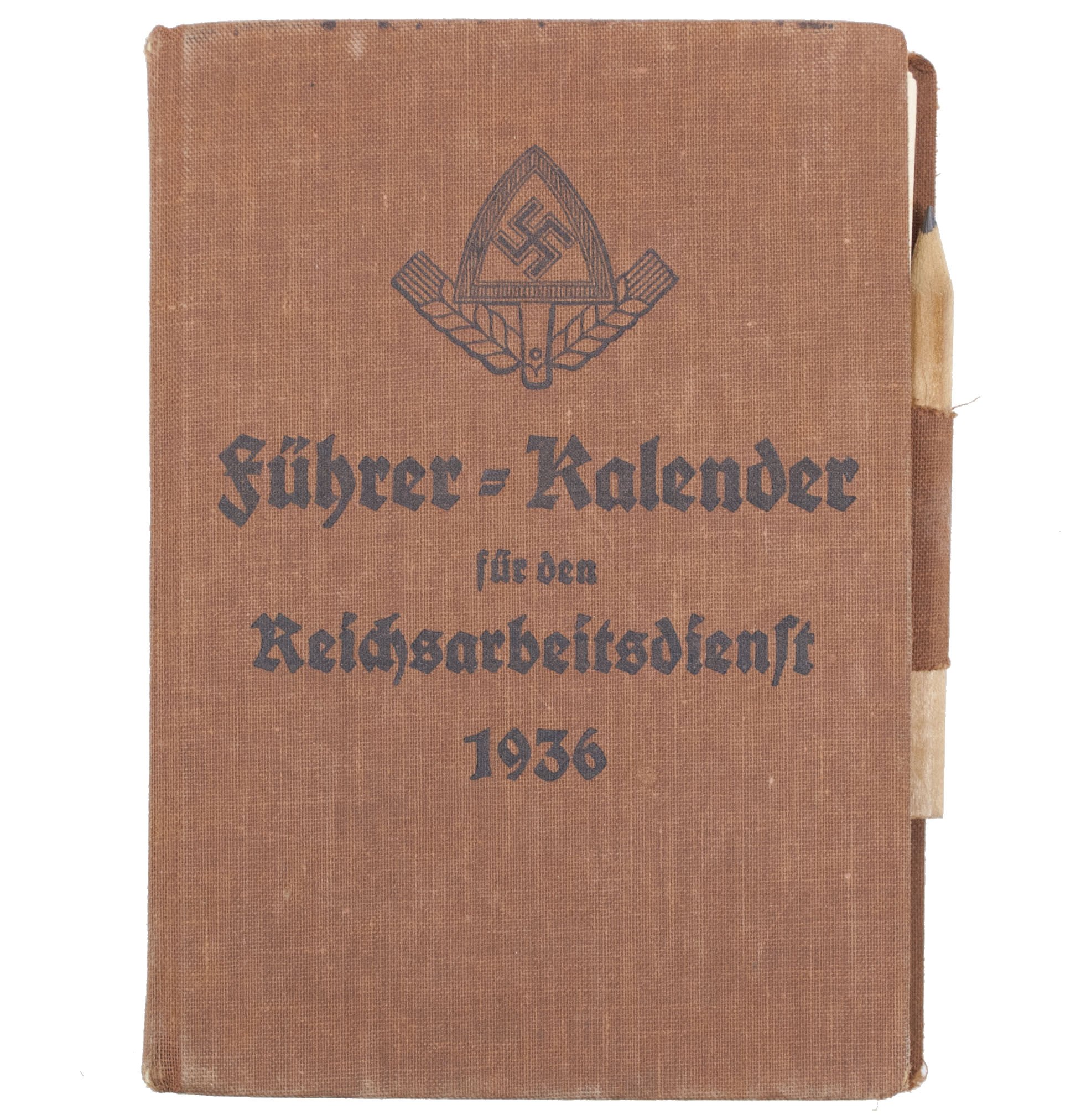(Book) FĂŒhrer Kalender fĂŒr den Reichsarbeitsdienst 1936.Complete with pencil.In very good condition, stapled removed.Very hard to find!