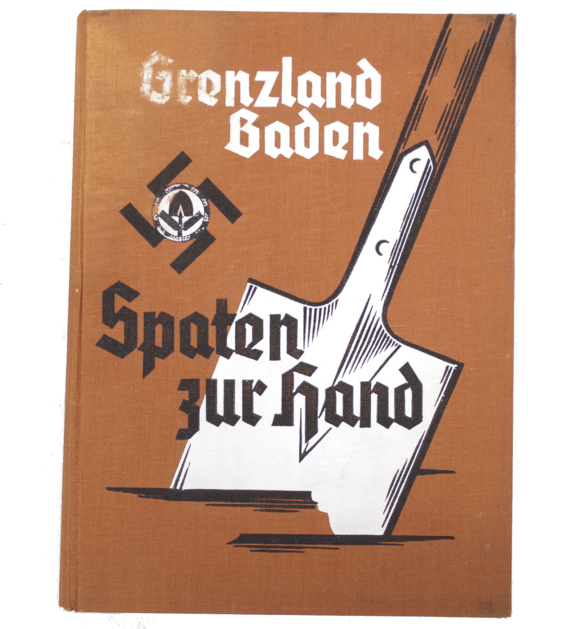 (Book) Grenzland Baden β Spaten zur Hand β Das Werden und Schaffen des Arbeitsgaues XXVII Baden, Buchdruckerei L.F. MΓΌller, Karlsruhe, (1938), full linnen bound.With dedication and stamp on the first page: 'Thanks for service in the RAD unit 6-275 Flankenbach'.In good condition. Some waterdamage on the backcover, inside is good.