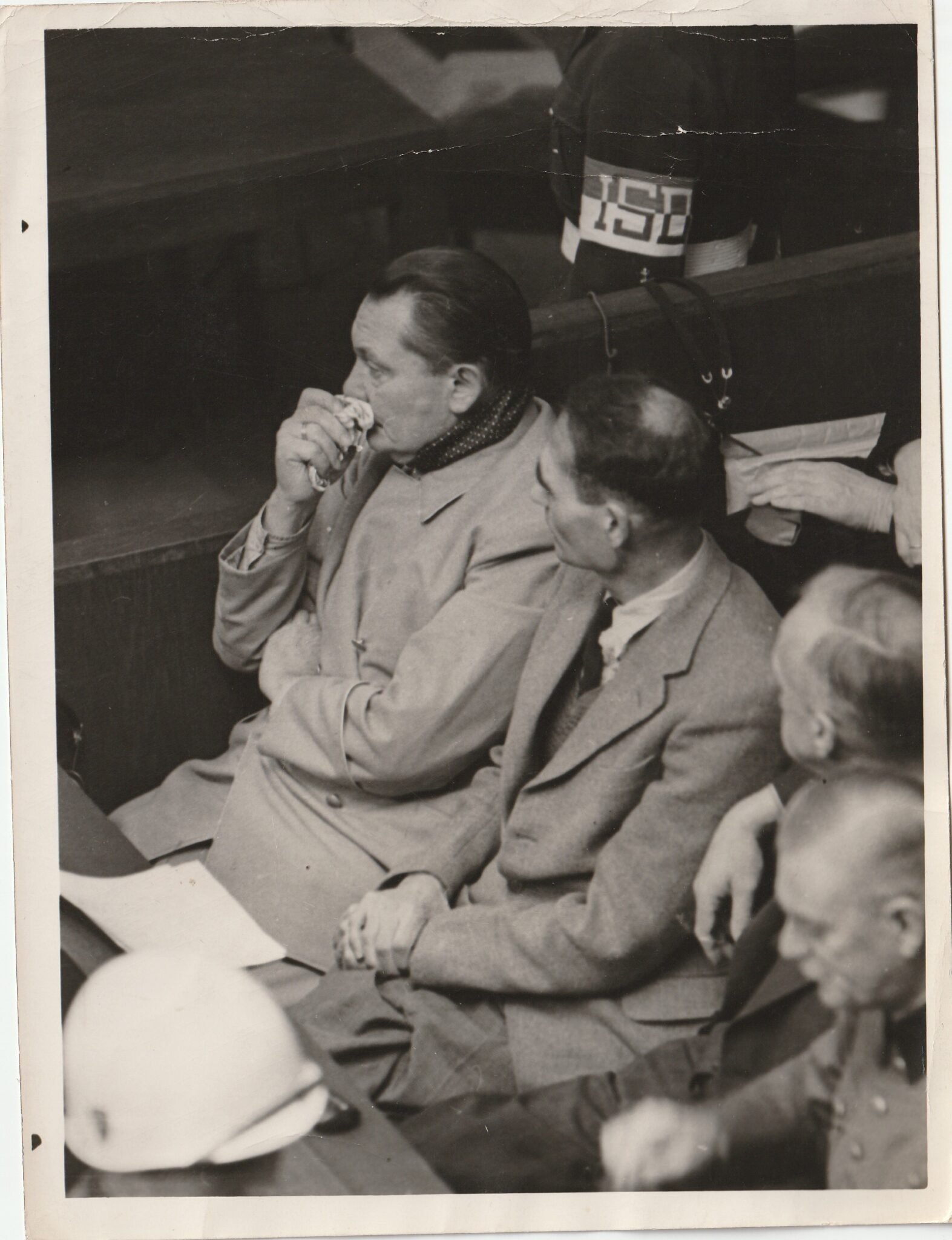 (Pressphoto) Nuremberg Trials Goering + Hess 'Goering has a cold'.Associated Press.1945/1946.Approximately 20,5 x 15,5 centimeters.Original period pressphoto.