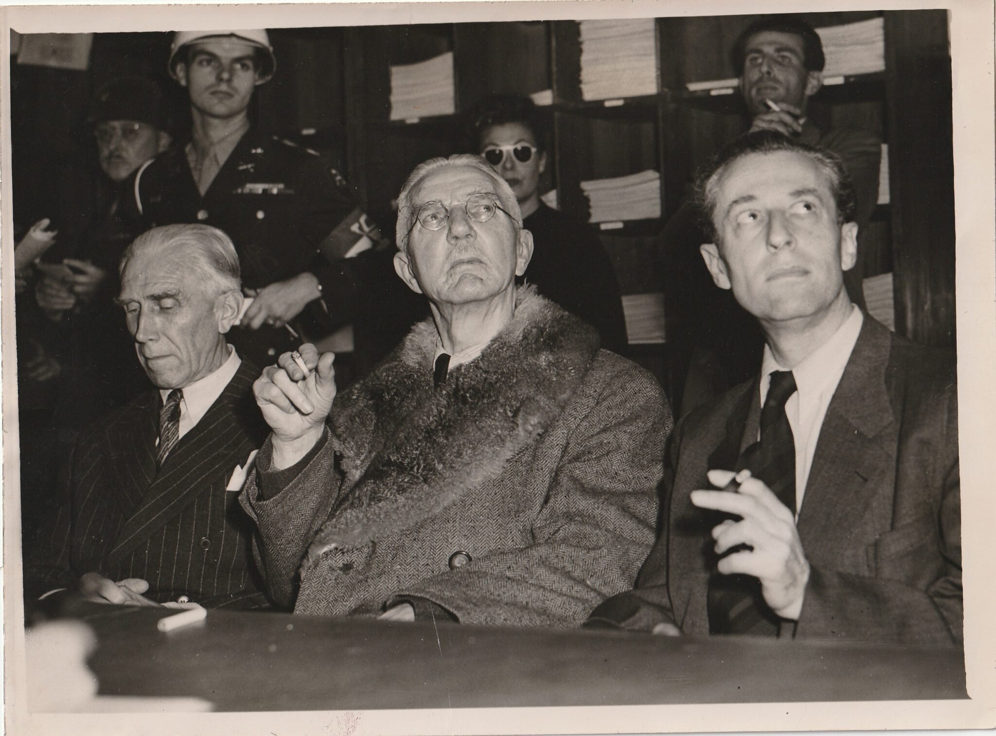 (Pressphoto) Nuremberg Trials – von Papen + SchachtAssociated Press.1945/1946.Approximately 20,5 x 13 centimeters.Original period pressphoto