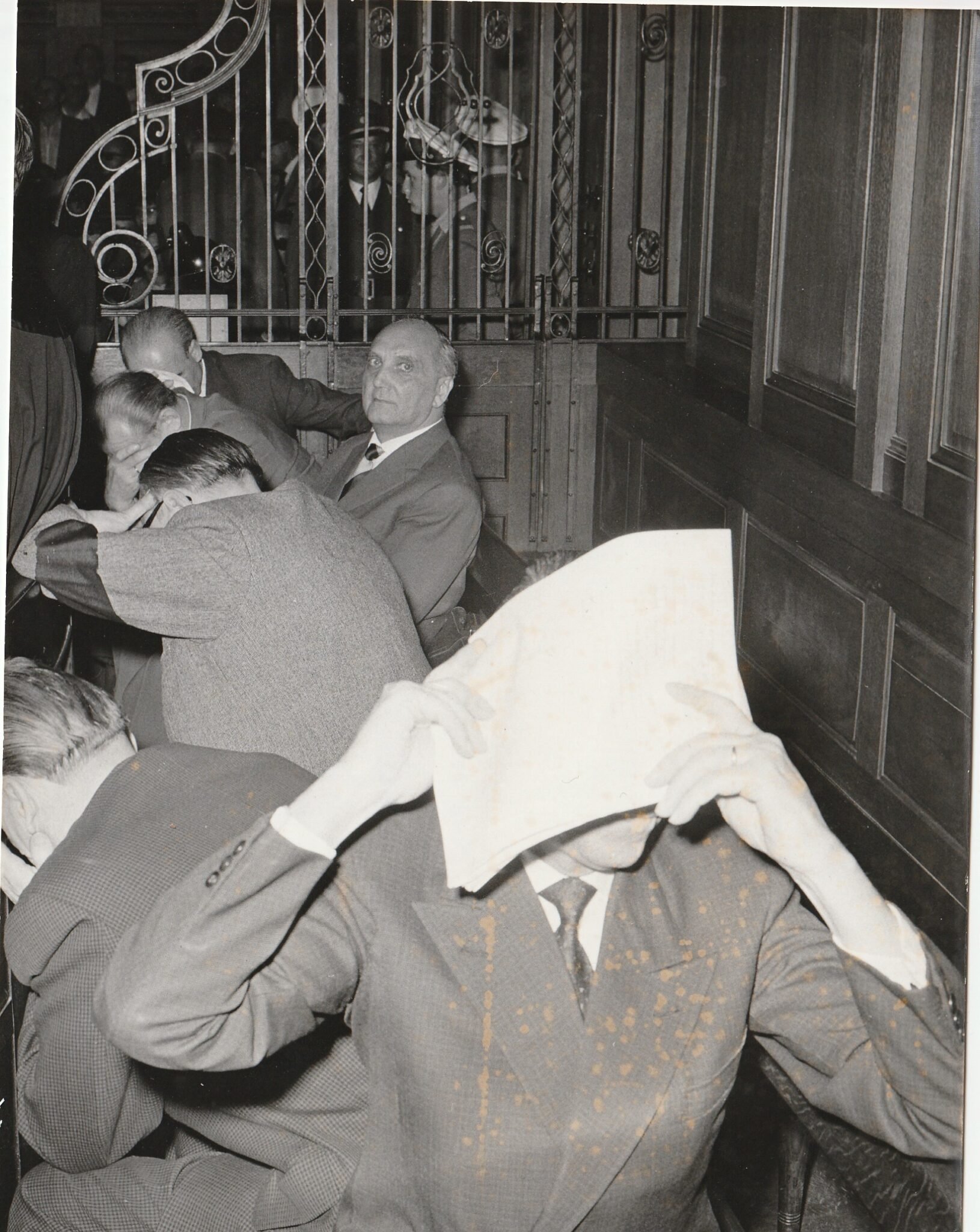 (Pressphoto) Nuremberg Trials – Dr. Alfred Filbert former SS-battailon leader