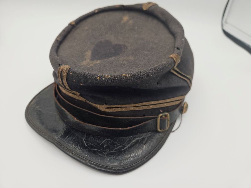 Original Civil War Kepi. The outline of the heart is the symbol of the Union army 24th Corp. Formed in 1864 under General Butler. The original heart is missing but shows signs of it's existence. This is a rare original union army Kepi. Located in our Portland Store. Free shipping in the US. Foreign buyers contact us for a shipping quote.