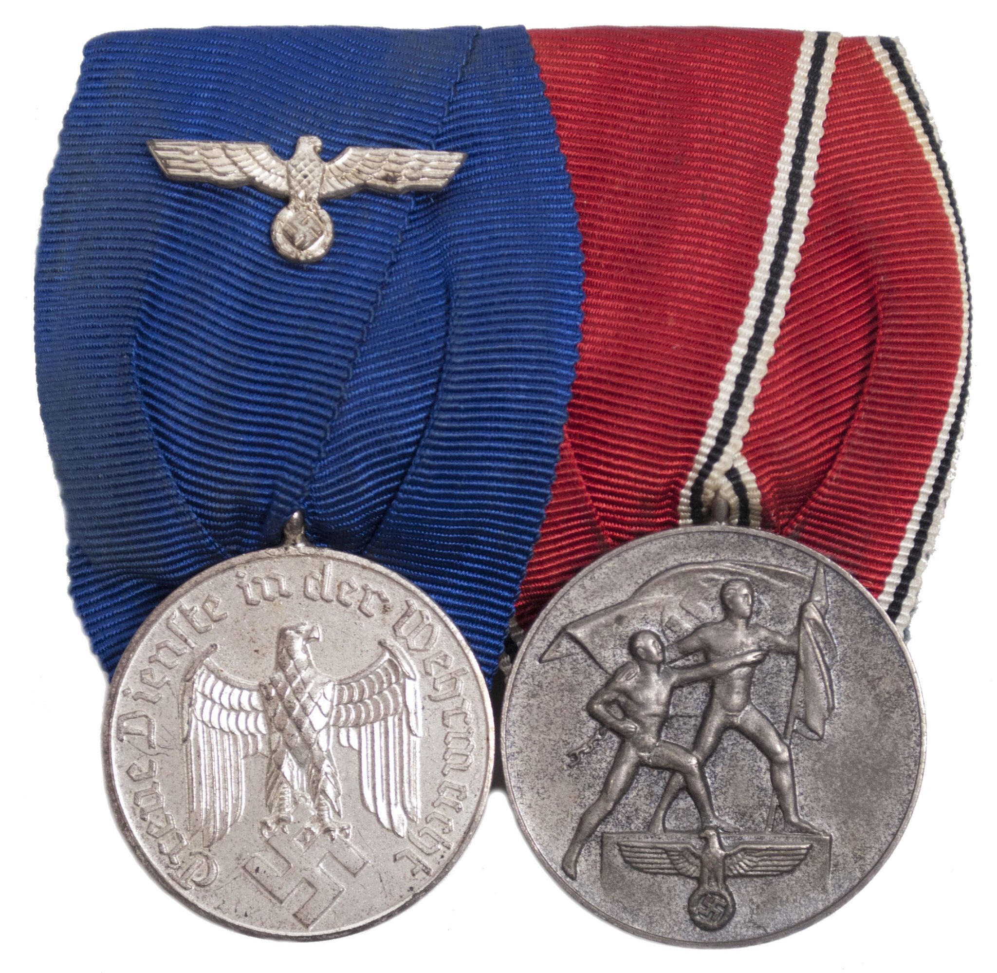 German WWII medalbar with Dienstauszeichung 4 Jahre + Anschluss medaille.In very good condition.Hard to find in this combination as double medalbar.
