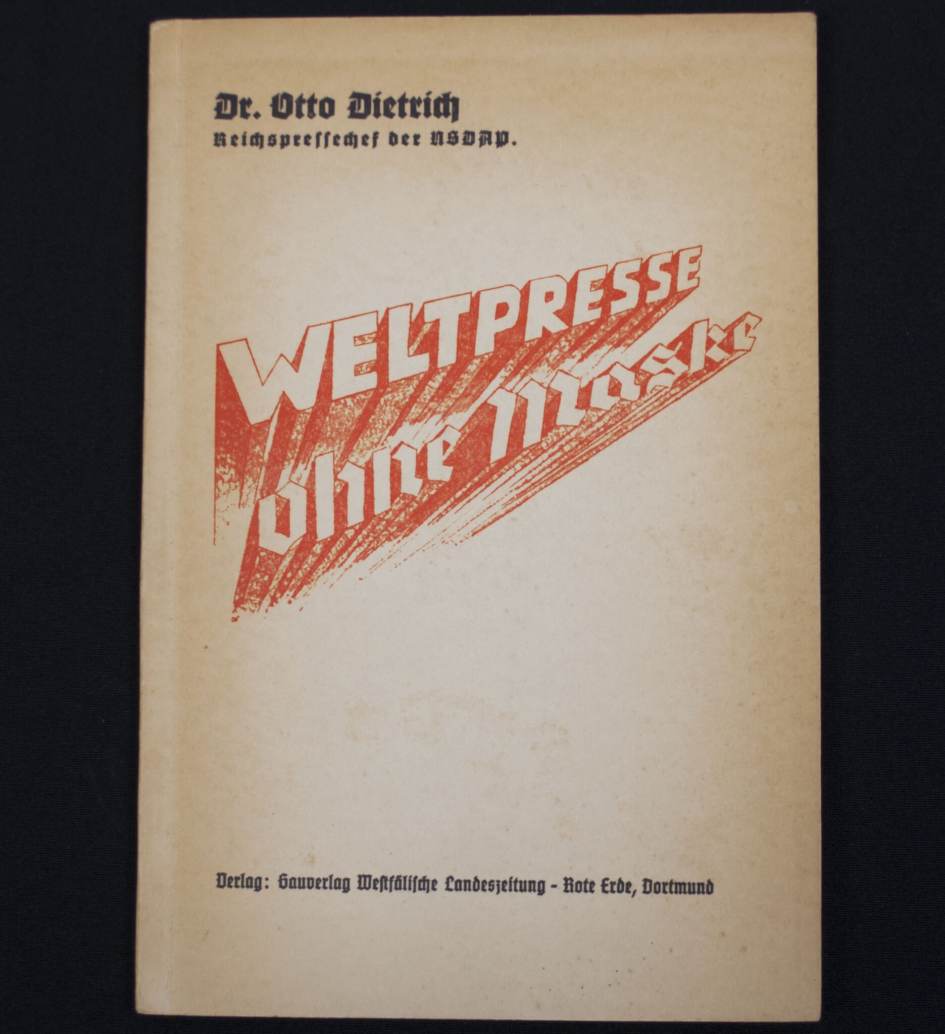 (Brochure) Otto Dietrich – Weltpresse ohne Maske, Gauverlag Westfalische Landeszeitung, Dortmund, (1937).In good condition
