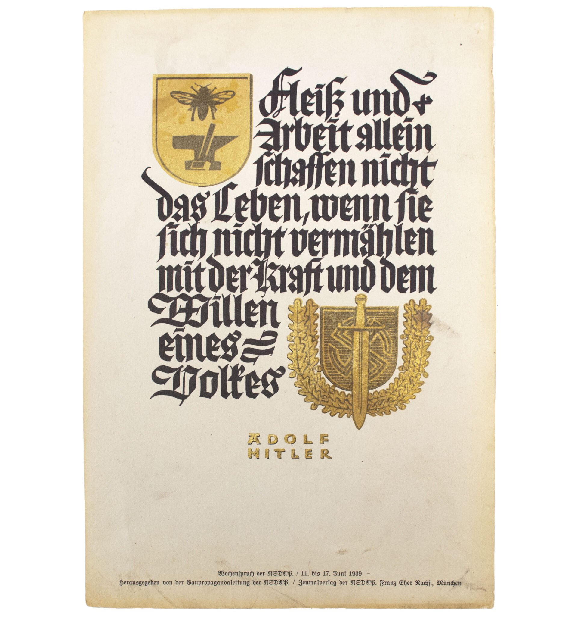 WWII German NSDAP Wochenspruch (Hitler) with gold details (1939)