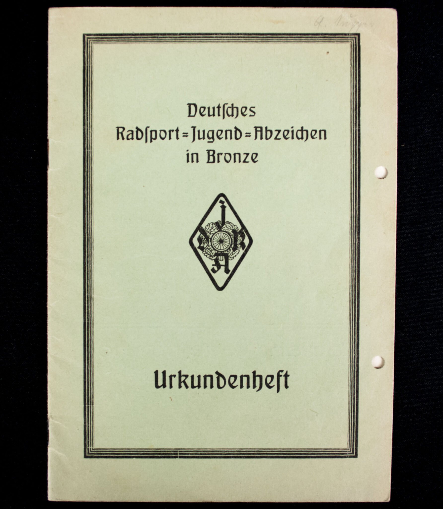 Deutsches Radsport Jugend Abzeichen in Bronze Urkundenheft.In very good condition.These are very hard to find.