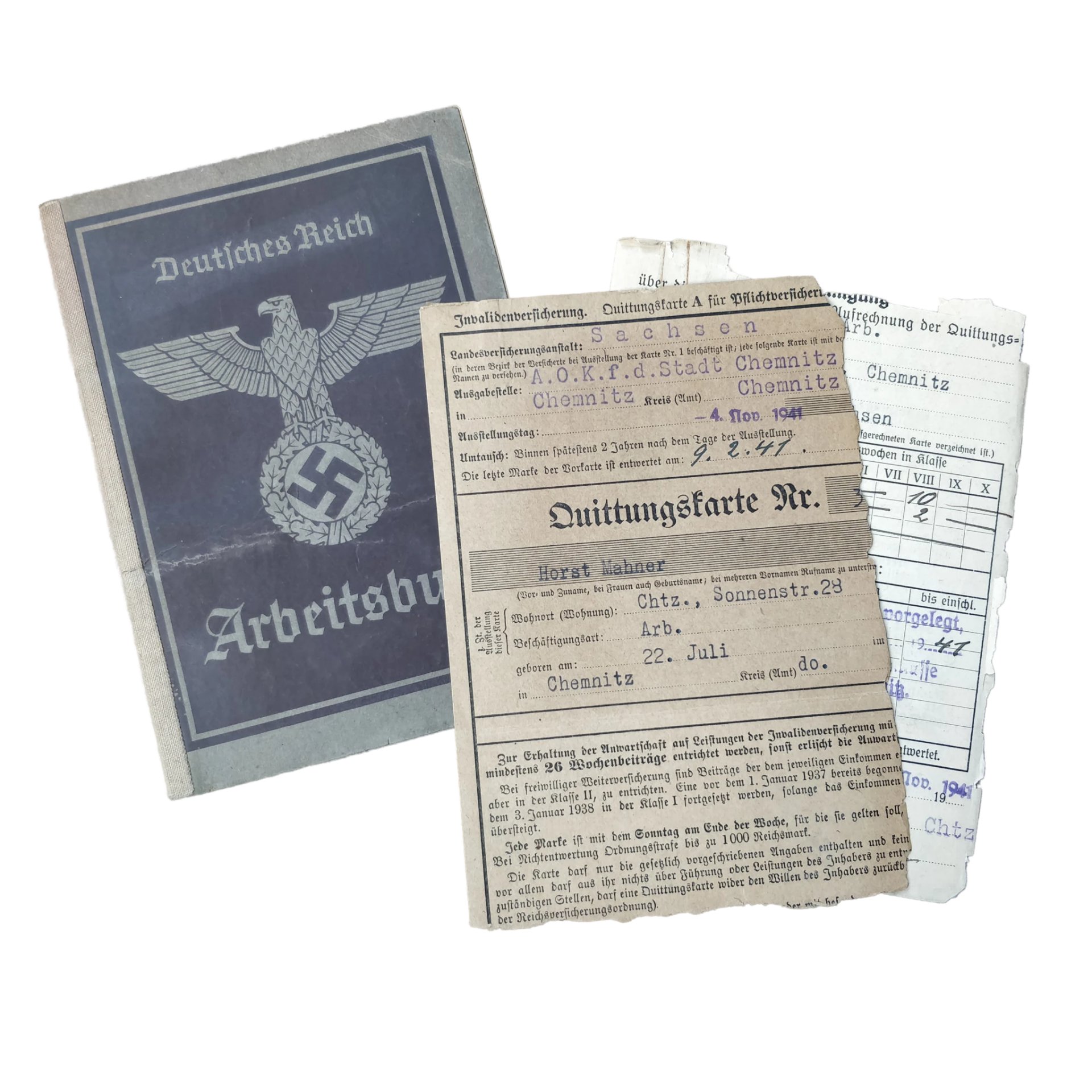 WWII German Arbeitsbuch With Documents Chemnitz