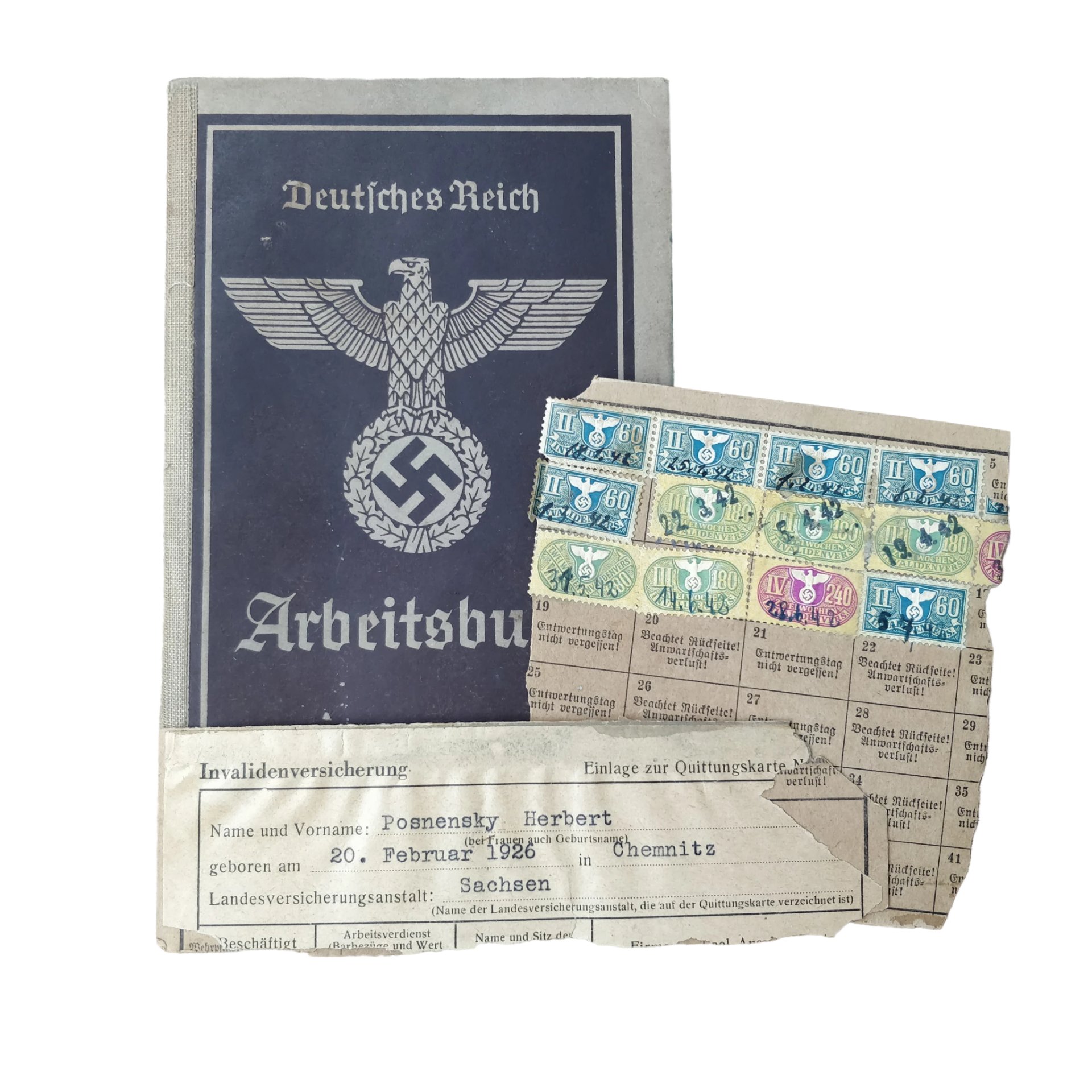 WWII German Arbeitsbuch With Documents Chemnitz