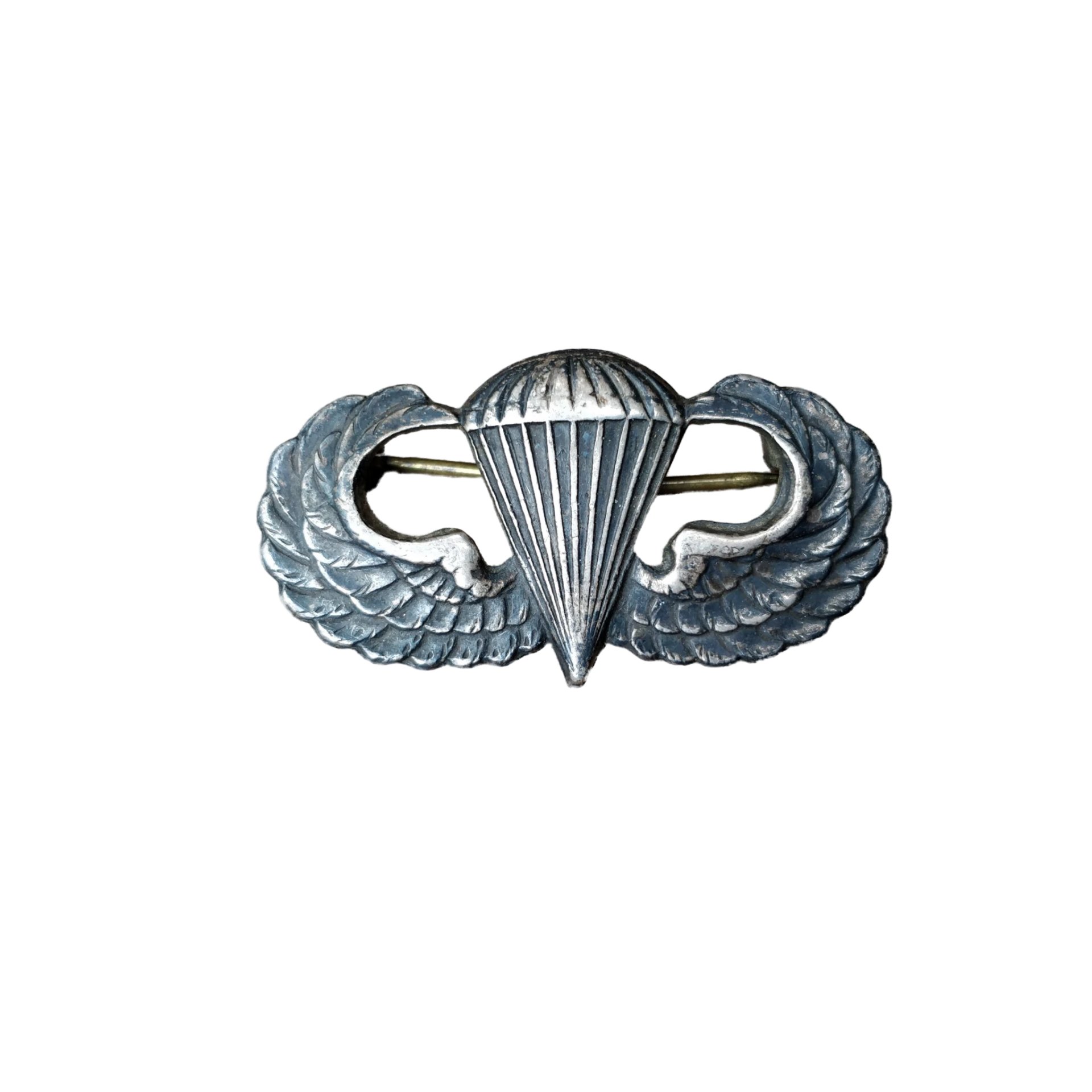 WWII US Paratrooper Jump WingsDe jump wings zijn nog in zeer nette conditie. De sluiting is defect. Een mooi stuk voor de Amerikaanse militariaverzamelaar!WWII US Paratrooper Jump WingsThe jump wings are still in very neat condition. The catch has a defect. A beautiful piece for the American militaria collector!
