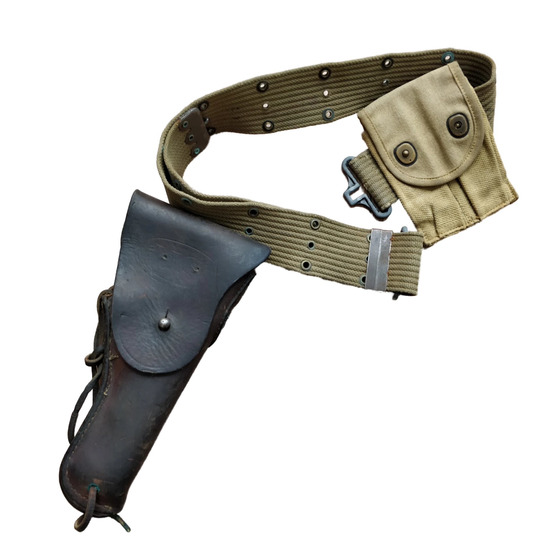 WWII Amerikaanse uitrustingsset 7th Armored DeurneDe set is in redelijke staat maar heeft wat gebruikssporen. Deze set bestaat uit Pistol belt, ammo pouch en colt Holster. De set is gevonden op een zolder in de stad Deurne, bevrijd door de 7th Armored Division ten tijde van Market Garden. Een mooie set voor de Amerikaans verzamelaar!WWII American equipment set 7th Armored DeurneThe set is in reasonable condition but has some traces of use. This set consists of Pistol belt, ammo pouch and colt Holster. The set was found in an attic in the city of Deurne, liberated by the 7th Armored Division during Market Garden. A nice set for the American collector!