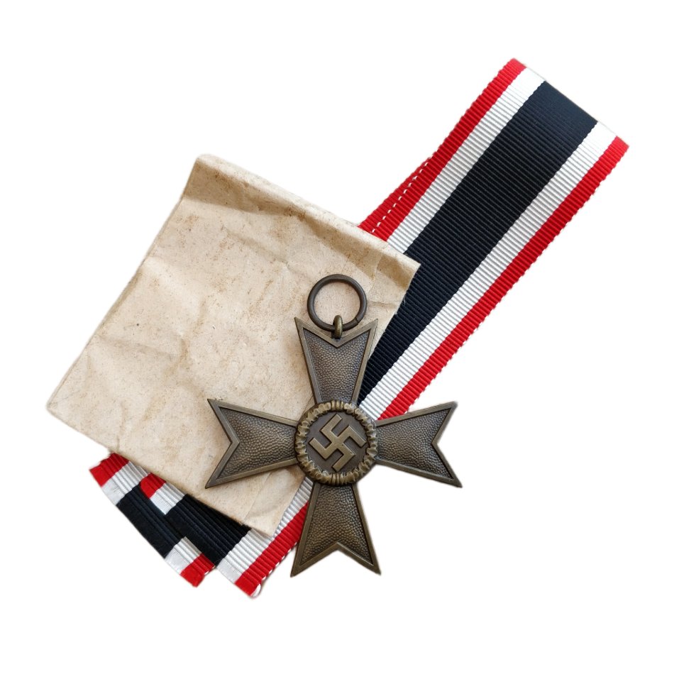 WWII Duits kriegsverdienstekruisHet kriegsverdienste kruis verkeert in goede conditie. Deze medaillekon worden uitgereikt aan militairen en burgers voor dapperheid die niet direct in verbinding stond met militaire acties.Een mooi item voor je Duitse collectie.WWII German War merit medalThe War merit medal is in good condition. This medal could be awarded to soldiers and civilians for bravery that was not directly connected to military actions.A nice item for your German collection.