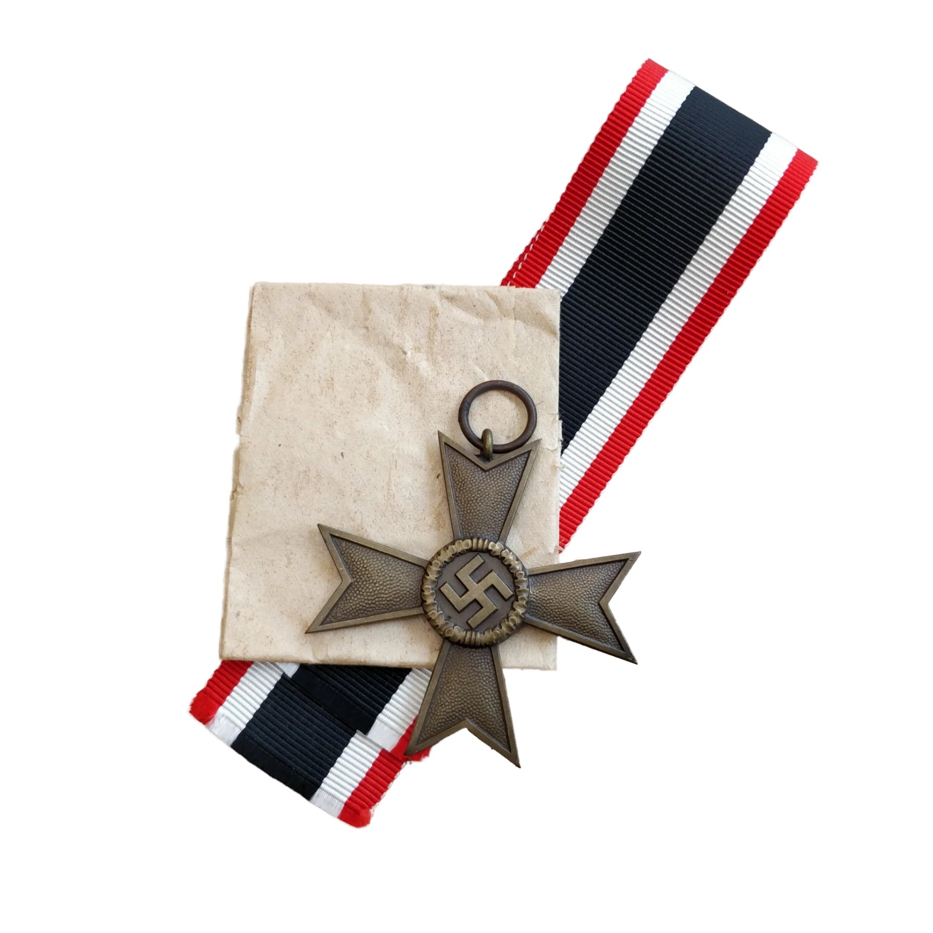 WWII Duits kriegsverdienstekruisHet kriegsverdienste kruis verkeert in goede conditie. Deze medaillekon worden uitgereikt aan militairen en burgers voor dapperheid die niet direct in verbinding stond met militaire acties.Een mooi item voor je Duitse collectie.WWII German War merit medalThe War merit medal is in good condition. This medal could be awarded to soldiers and civilians for bravery that was not directly connected to military actions.A nice item for your German collection.