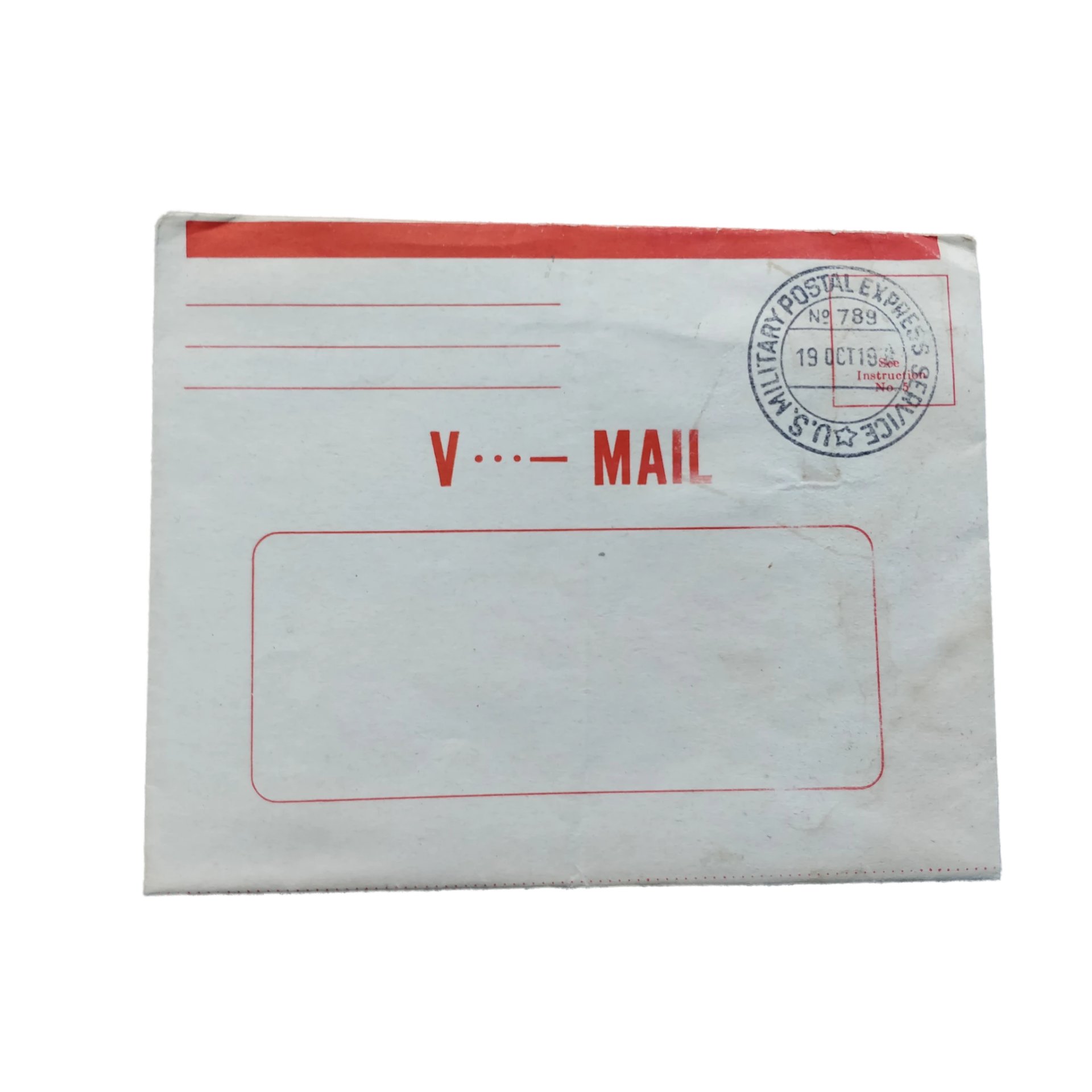 WWII Amerikaanse V-MailMet deze brieven konden Amerikaanse soldaten naar huis schrijven. V-mail staat voor Victory-Mail.Om de kosten van het verzenden van een brief via het militaire postsysteem te verlagen, zou een V-mailbrief worden gecensureerd, gekopieerd naar film en bij aankomst op zijn bestemming terug op papier worden afgedrukt. Een erg interessant stuk voor bij je Amerikaanse collectie spullen uit de Tweede Wereldoorlog.WWII American V-mail letterAmerican soldiers could write home with these letters.V-mail stands for Victory-Mail. To reduce the cost of sending a letter through the military mail system, a V-mail letter would be censored, copied to film and printed back on paper upon arrival at its destination. A very interesting piece for your American collection of items from the Second World War.