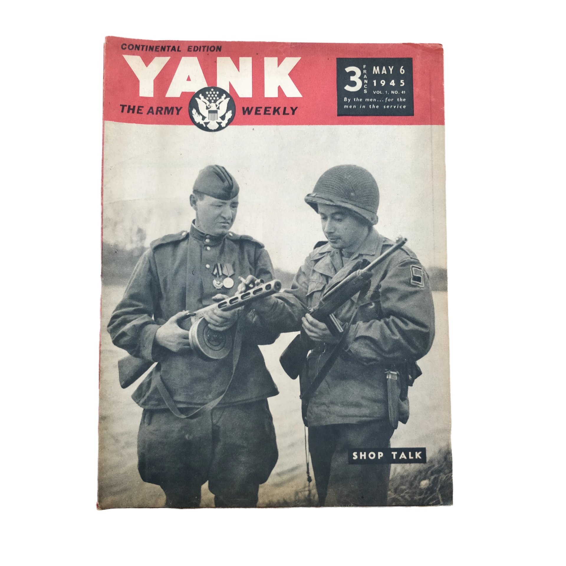 WWII Amerikaans Yank magazineHet tijdschrift is in gebruikte conditie. Een prachtig item om in te lijsten met een mooie kaft. De inhoud van het tijdschrift staat vol met mooie foto's en interessante informatie.WWII US Yank magazineThe magazine isin used condition. A beautiful item to frame with a beautiful cover. The content of the magazine is full of beautiful photos and interesting information.
