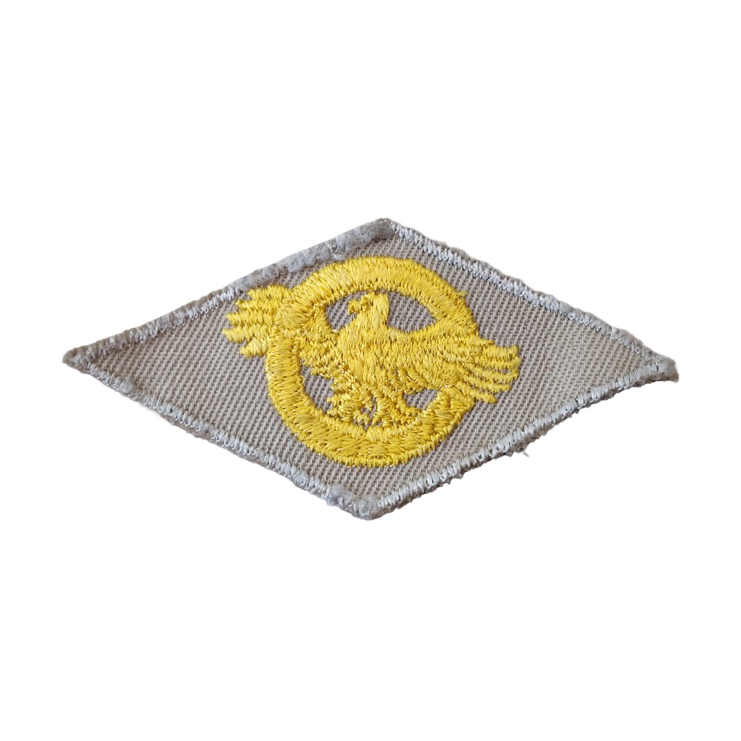WWII Amerikaanse patch ruptured duckDe ruptured duck verkeerd in goede conditie. Je kreeg deze patch als je eervol werd ontslagen uit het Amerikaanse leger. De patch werd gedragen op de rechter borst. Boven de borstzak.Een mooi item om toe te voegen aan je collectie Amerikaanse items uit de Tweede Wereldoorlog.WWII US Ruptured duckThe ruptured duck is in good condition. You received this patch if you were honorably discharged from the US Army. The patch was worn on the right chest. Above the breast pocket.A great item to add to your collection of American items from the Second World War.