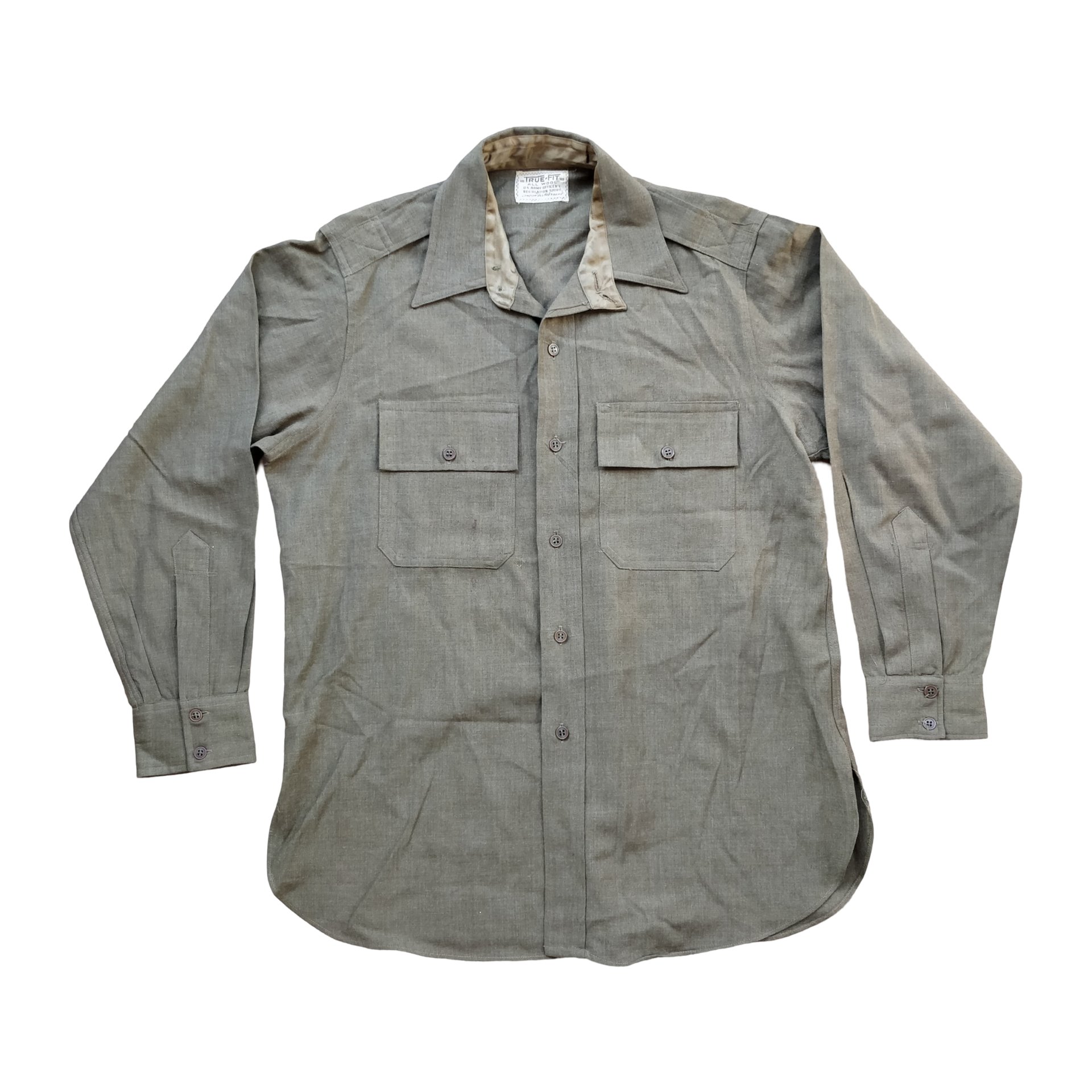 WWII Amerikaanse blouseDe blouse heeft lichte gebruikssporen maar is verder nog in nette conditie. Het label is nog goed leesbaar en het betreft een officiers uitvoering. Een mooie toevoeging voor je US collectie!WWII American blouseThe blouse has slight traces of use but is otherwise still in neat condition. The label is readable and this is an officers version. A nice addition to your US collection!
