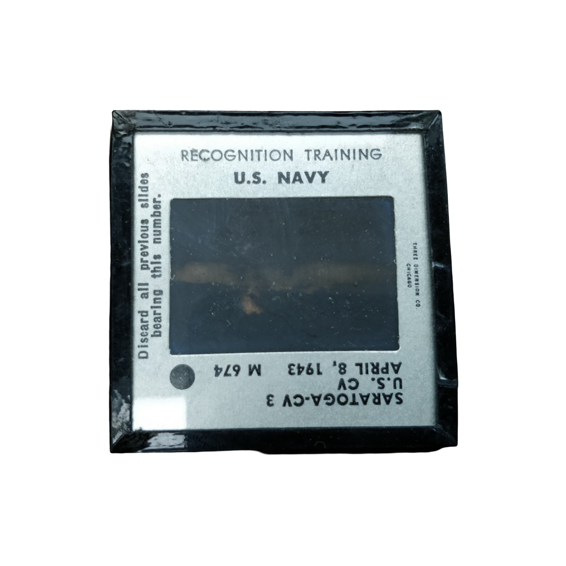 WWII Amerikaans Navy Glas NegatiefHet negatief is in nette staat en niet gebroken of gekrast.Wanneer je het negatief tegen het licht houd kun je goed het vliegdekschip de Saratoga zien! Deze negatieven/foto's werden gebruikt bij de training van Amerikaanse navy piloten voor het van bovenaf herkennen van hun eigen schepen. Een bijzonder stuk!WWII American Navy Glass NegativeThe negative is in good condition and not broken or scratched.When you hold the negative up to the light you can clearly see the aircraft carrier Saratoga! These negatives/photos were used in the training of American Navy pilots to recognize their own ships from above. A special piece!