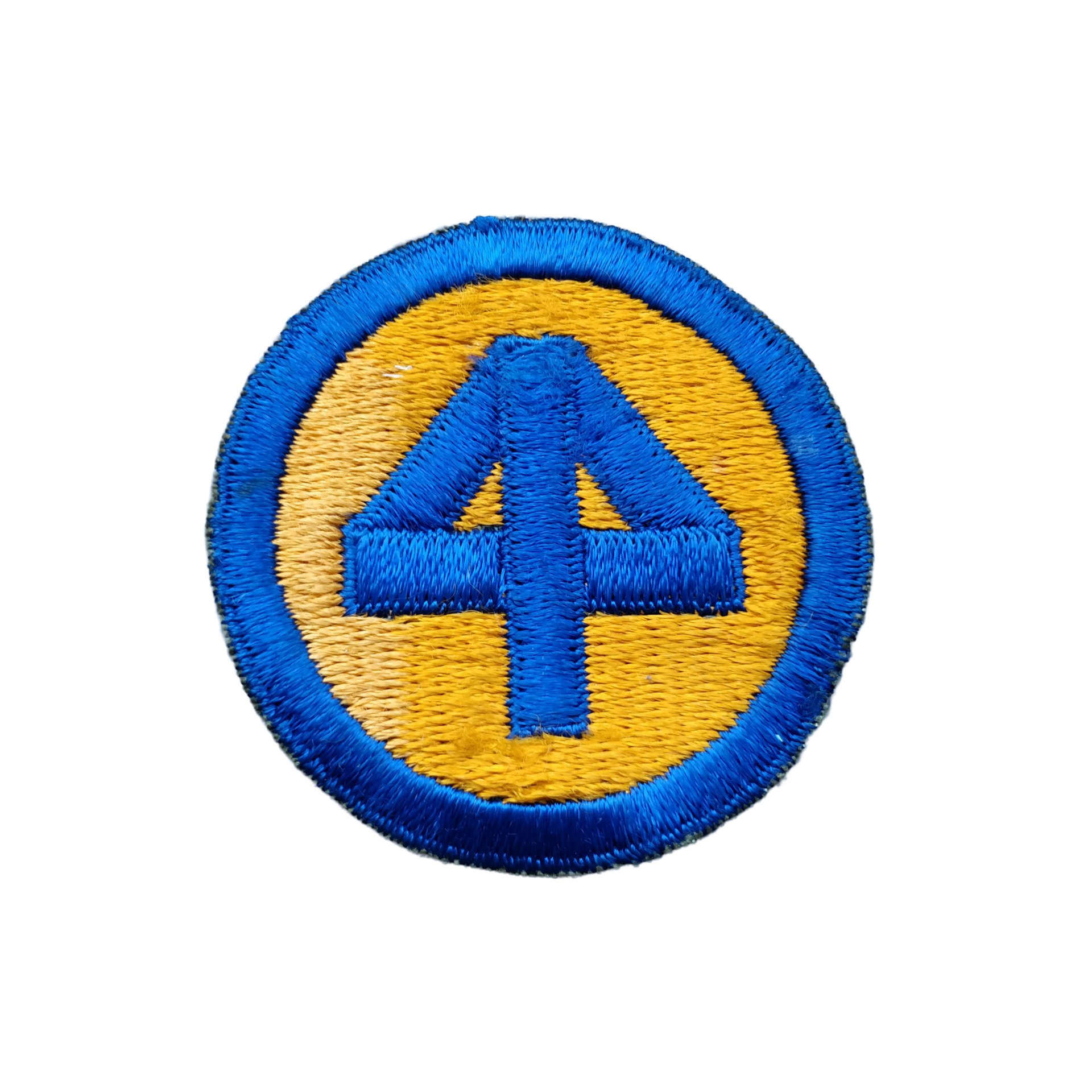 WWII US patch 44e infanterie divisieDit embleem werd gedragen door Amerikaanse soldaten die onderdeel waren van de 44e infanterie divisie.WWII US 44th infantry division patchThis emblem was worn by American soldiers who were part of the 44th infantry division.