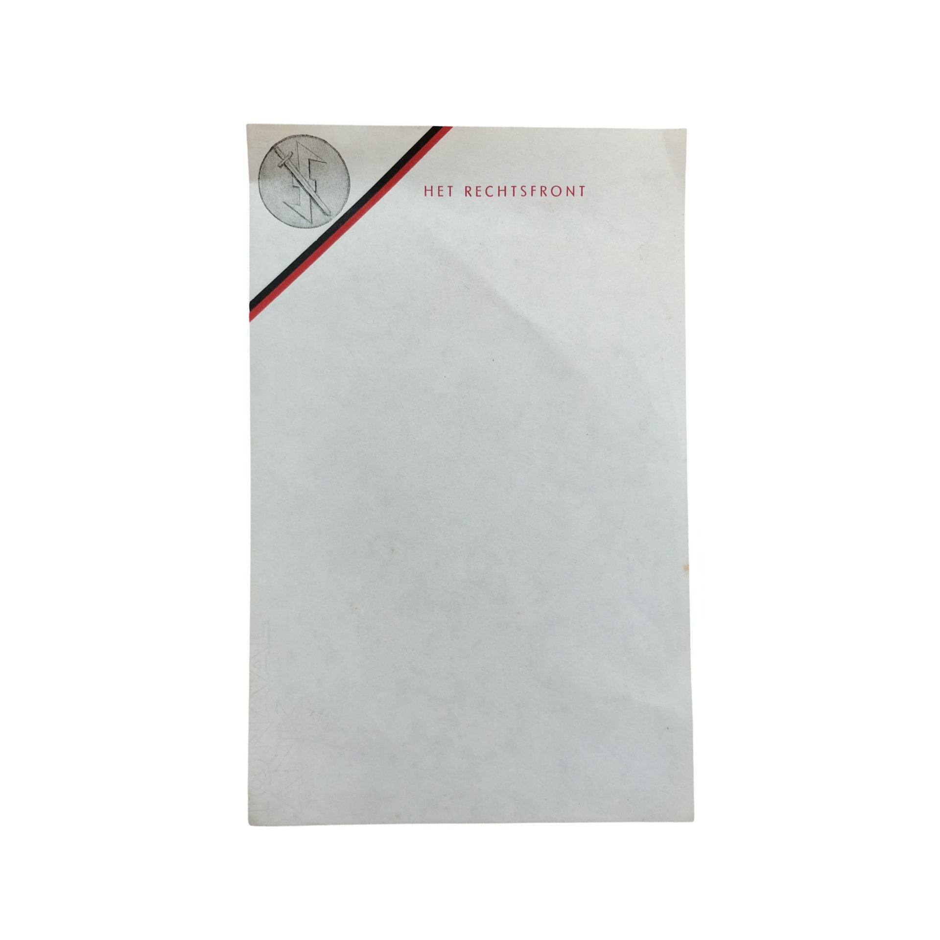 WWII Nederlands Rechtsfron DocumentHet document is in nette staat en nog ongebruikt. Het formaat is ongeveer A5. Een mooi stuk voor je Nederlandse collectie!WWII Dutch Rechtsfron DocumentThe document is in good condition and unused. The size is approximately A5. A nice piece for your Dutch collection!