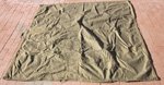 Original era manufacture. Early postwar production, olive colored rain proof cotton square which can be used as a rain cape or shelter half. Near new condition, storage wear only.