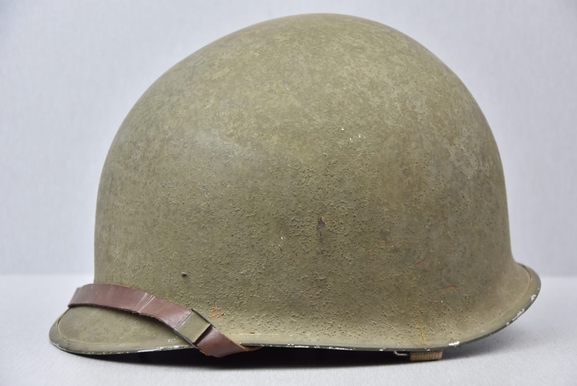 Straight from USA, a very nice untouched M1 helmet in good condition. The shell is complete with its chin strap and has a lot number stamped in the interior. The curved brim and oval seams are typical for the manufacturer of McCord. Liner is in very good condition and is maker marked by with the firm logo of Westinghouse. The liner is complete with its chin strap. The leather sweatband is gone. Nice early- to mid war produced American helmet.