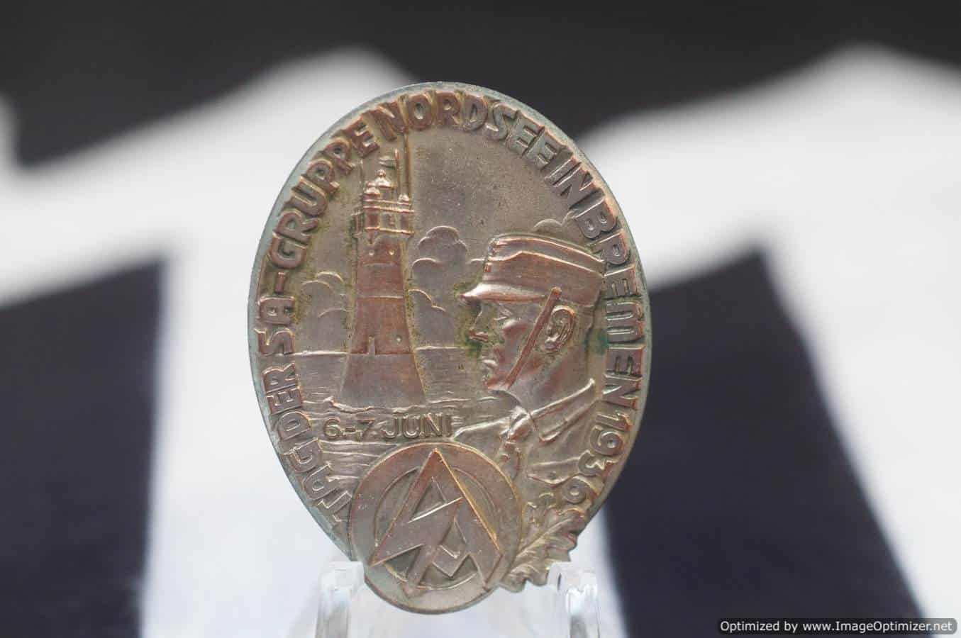 Tag der Sa-Guppe nordsee in Bremen 1936 6.-7. juni .Another tough one to find! This one is made very well out of high quality aluminum which has held up great!Maker mark on reverse is Bruno Mulde Bremen