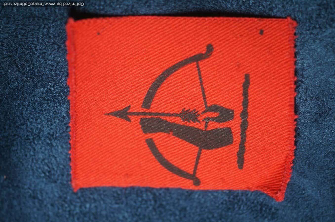 Minty and unissued! This is a World War II shoulder patch for the British Anti-Aircraft Command. It is in red twill and shows a drawn bow and arrow with an arm and hand silk-screened in black.