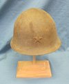 Original era manufacture. A very sound example for restoration featuring original paint, both original rivets and helmet star. The interior of the helmet shows that all three of the split rings are present in addition to portions of the original chinstrap. Several handpainted kanji characters are painted on the inside rim. The exterior of the helmet shows some light surface corrosion with a perfect match to the surface of the star.