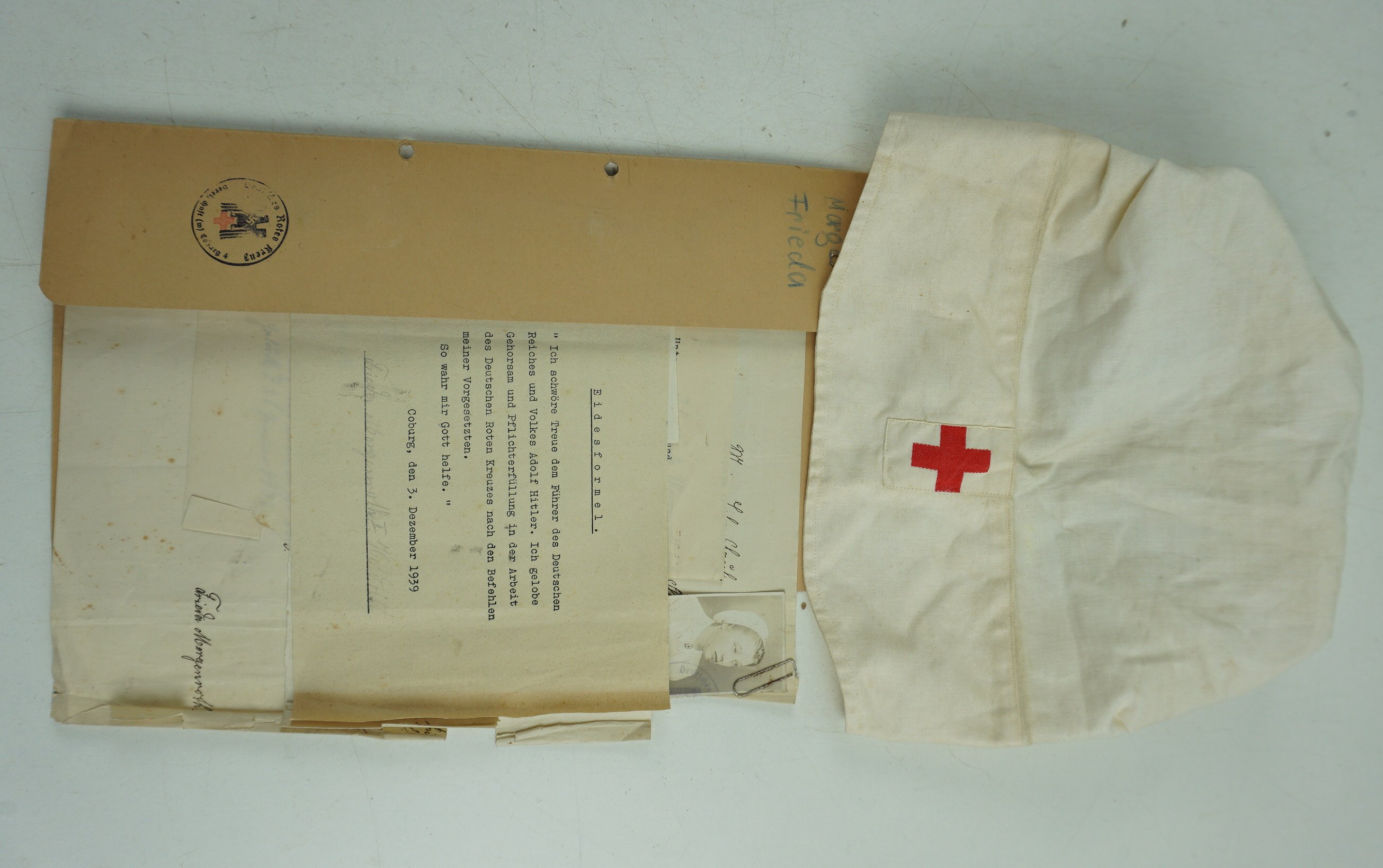 DRK Lot.'Schwesternhelferin' nurse helpers cap and papers''