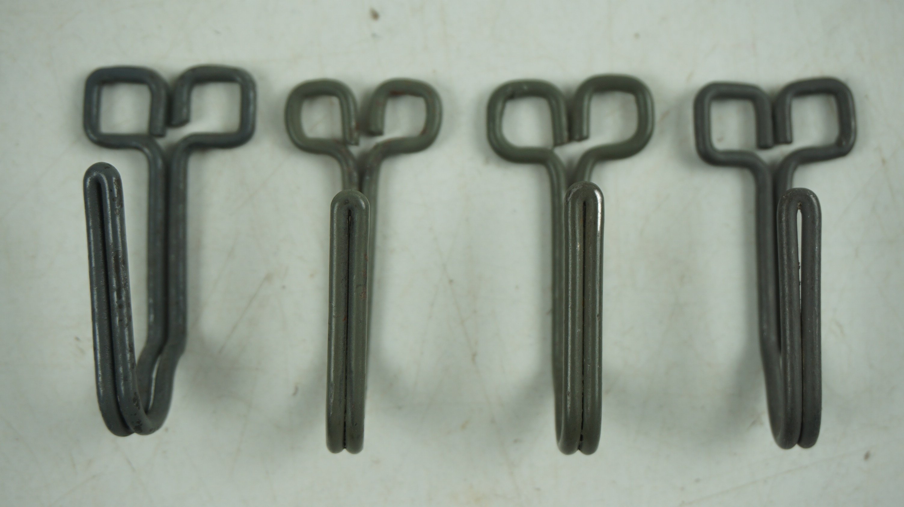 WEHRMACHT FOUR GREEN BELT SUPPORT HOOKS. (Seitenhaken) With orginal green paint! Very hard to find one set! It is in good condition