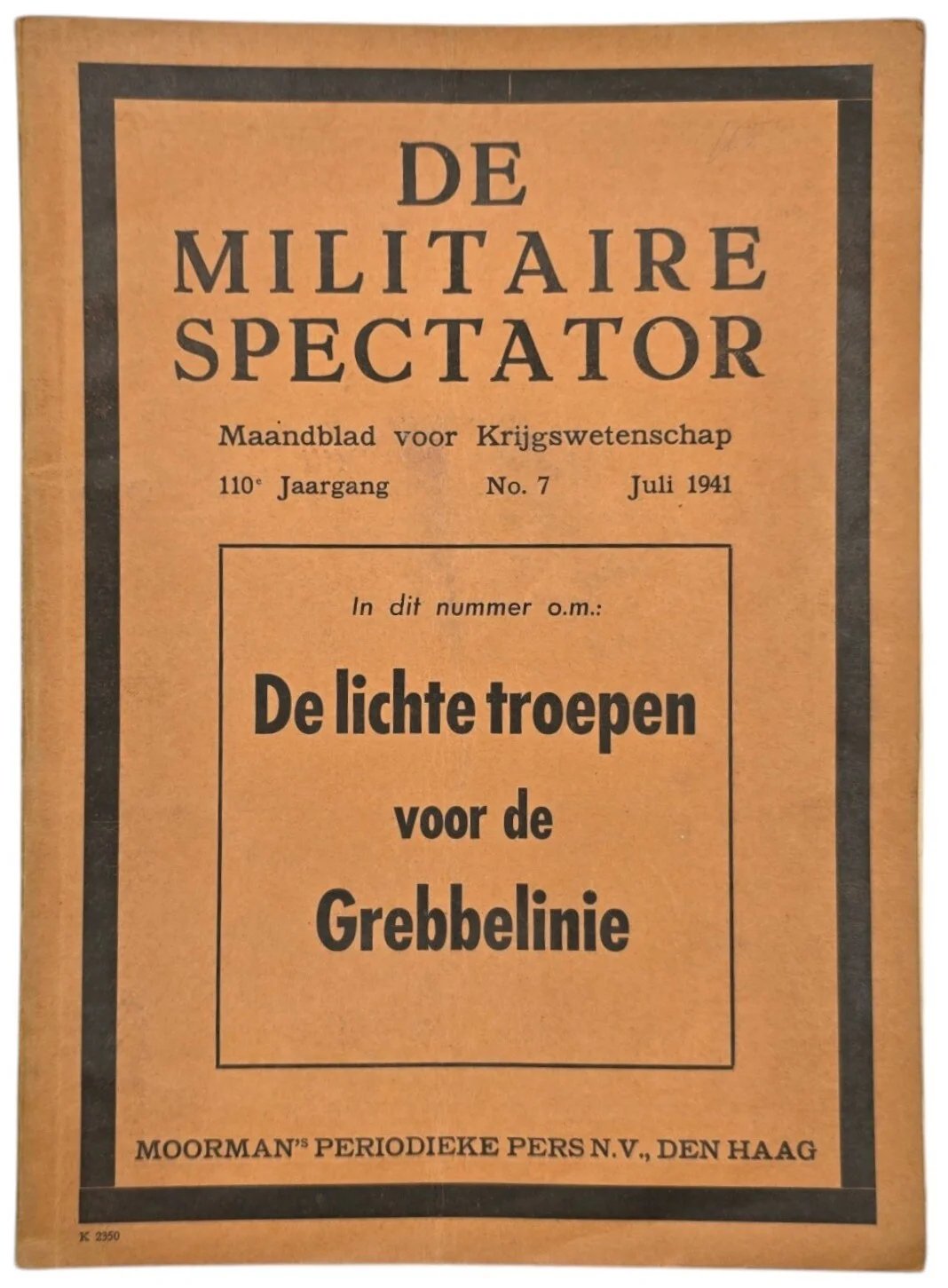 Original WW2 Dutch Brochure - De Militaire Spectator 110th Year No. 7, Grebbelinie, Juli (1941)With the maps.Originele Wo2 Nederlandse Brochure - De Militaire Spectator 110th Year No. 7, Grebbelinie, Juli (1941)De lichte troepen voor de Grebbelinie