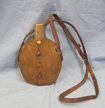 Original era manufacture. Standard pattern canteen as carried by Japanese Army officers during WWII. Olive colored wool cover with four button snap closure and leather trim. Removable jigger style cap with an EM type cork stopper and attached leather shoulder strap. Clean, strap leather a little stiff, original owners name stitched onto the reverse of the cover.