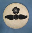 Original era manufacture. White cotton disc with hand sewn black wool design. Shows soiling from age and wear. Appears to have been removed from a uniform.