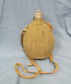 Original era manufacture. An aluminum bodied canteen with an olive colored wool cover & canvas shoulder strap. The wool cover shows mothing and the small hook at the end of the cap chain needs to be reattached.