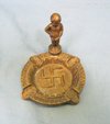 Original era manufacture. Small brass ashtray of the famous little boy peeing on the Nazi swastika. The Manneken Pis is a famous landmark in Brussels, he is a statue by Jerome Duquesnoy and has been doing his business since 1619, that's one hell of a bladder. Great little guy, likely made from shell brass.