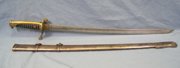Original era manufacture. An unusual example with a Navy anchor on its brass backstrap and scabbard tip. Polished steel blade with a 22.5 inch blade, sharp cutting edge, certainly not a dress sword.The blade is overall very clean with some scattered nicks along its edge, most located near the tip. Black leather wrapped grip with brass twisted wire binding.Steel scabbard with two suspension loops, heavy cleaned corrosion near the throat on one side.